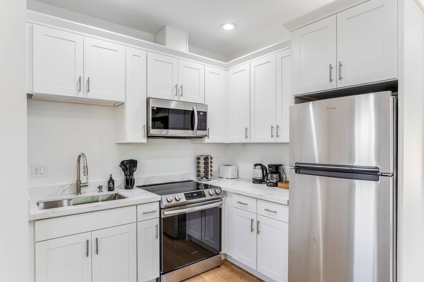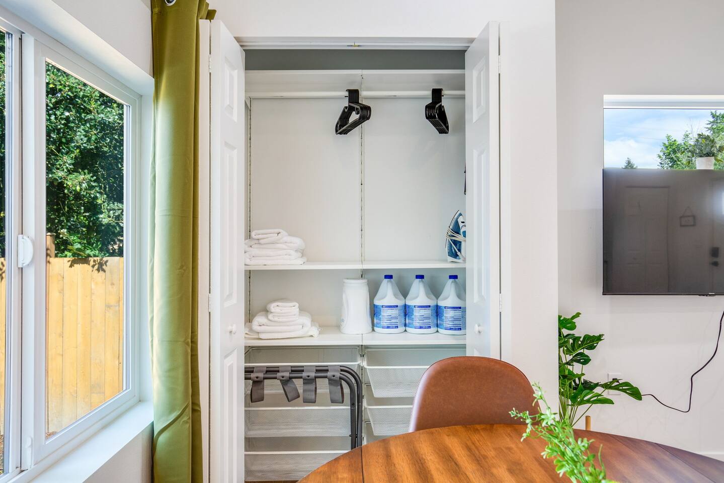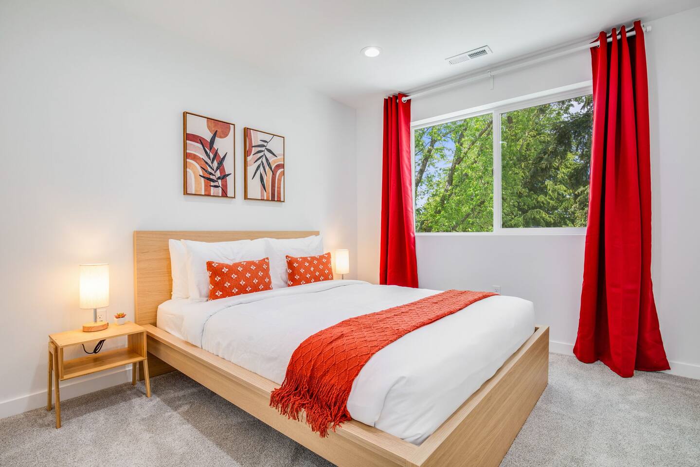 Beautiful 2-level 2600 sq ft single family home with a main home, and an attached mother in law unit with separate kitchen with combined 5 bedrooms, 4 bathrooms. Has a rare central AC for summer! We are 15 mins drive to all of Seattle's best attractions including Capitol Hill, Pike Place market, Space needle. This is the perfect place for large groups to immerse themselves in the central vibe of Seattle, and work from home. This beautiful luxury home offers high-end amenities through and through! Relax at the end of your day in spacious living room w/ high end furniture, hotel-grade luxury bedding with fresh white linens & fluffy duvets. Free three car parking in driveway and plenty of street parking! Home Layout: [First Floor] - Home Entrance - Living Room w/ two sofas and 65'' TV - Dining Table (seats 10 people) - Breakfast table (seats 4 people) - Kitchen with island - Washer dryer - Bathroom #1: Full bathroom w/ Tub [Second floor]: - Bedroom #1: Two queen beds w/ attached bathroom #2 - Bathroom #2 Full bathroom w/ tub - Bedroom #2: One queen bed - Bedroom #3: One queen bed - Bedroom #4: One queen bed - Bathroom #3: Full bathroom w/tub [Studio unit on first floor] - Second kitchen - Dining table with 3 chairs - Bedroom #5: One queen bed - 55' TV - Bathroom #4: Full bathroom w/tub - Second washer dryer unit [Exterior] 1 car driveway for Honda HRV w/ 240V EV out (NEMA 14-50 outlet). Backyard Home Highlights: - Stylish interior design and beautiful furniture in a luxury home with high-end finishes. - Hotel grade bedding for a comfortable sleep - Fully-stocked kitchen with Keurig coffee maker and coffee pods, pots, pans, bowls, plates, glasses and utensils - 65'' Smart TV with Disney & Hulu (no Cable) - High-speed WIFI (upto 200 mpbs) - Washer/Dryer - Smarthome ready with electronic lock, and Ring security system. This house is close to everything: SeaTac airport -> 12 min drive Downtown Seattle Seattle -> 15 min drive Amazon Spheres -> 18 min drive CapHill -> 18 min drive Queen Anne/Space Needle -> 22 min drive
