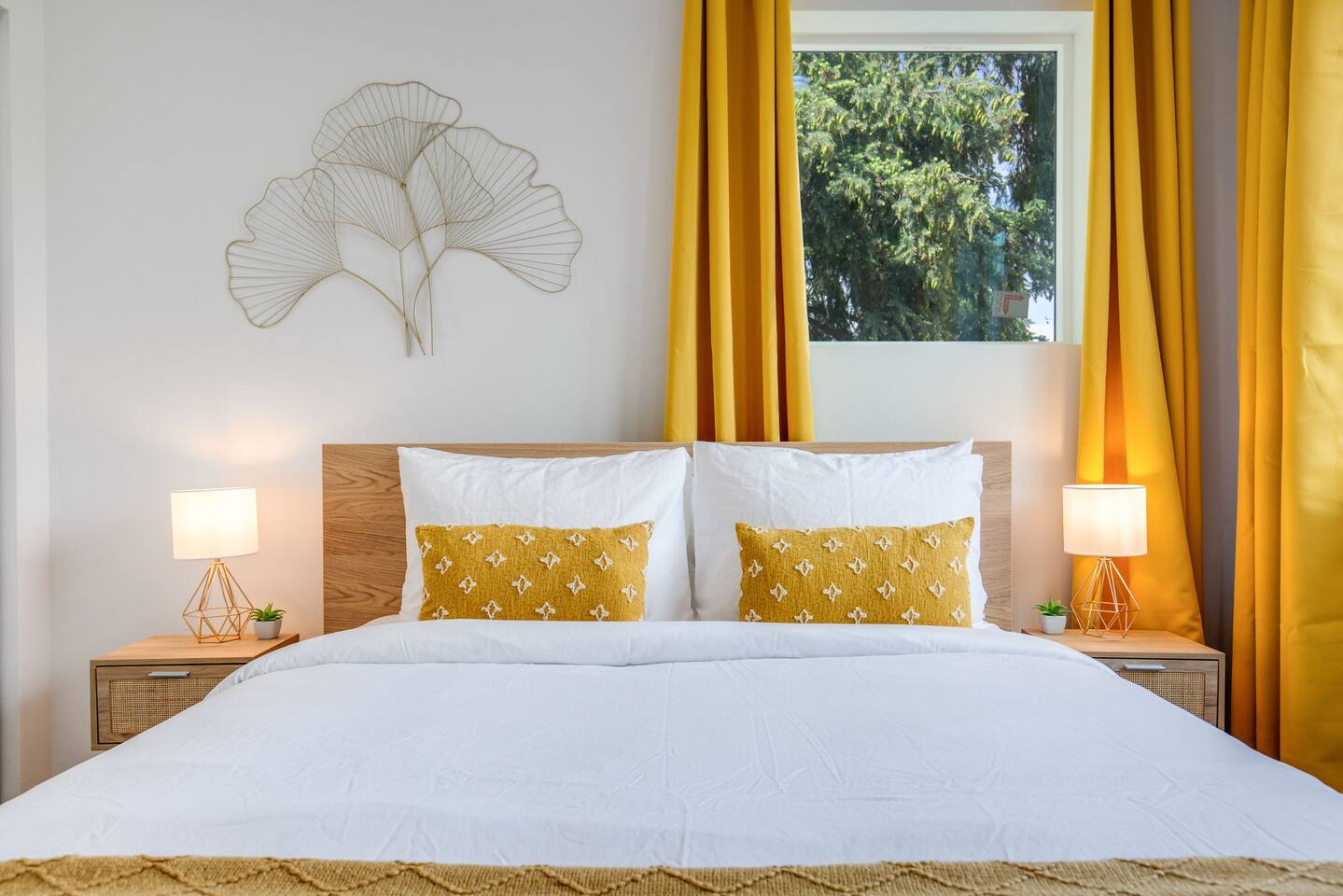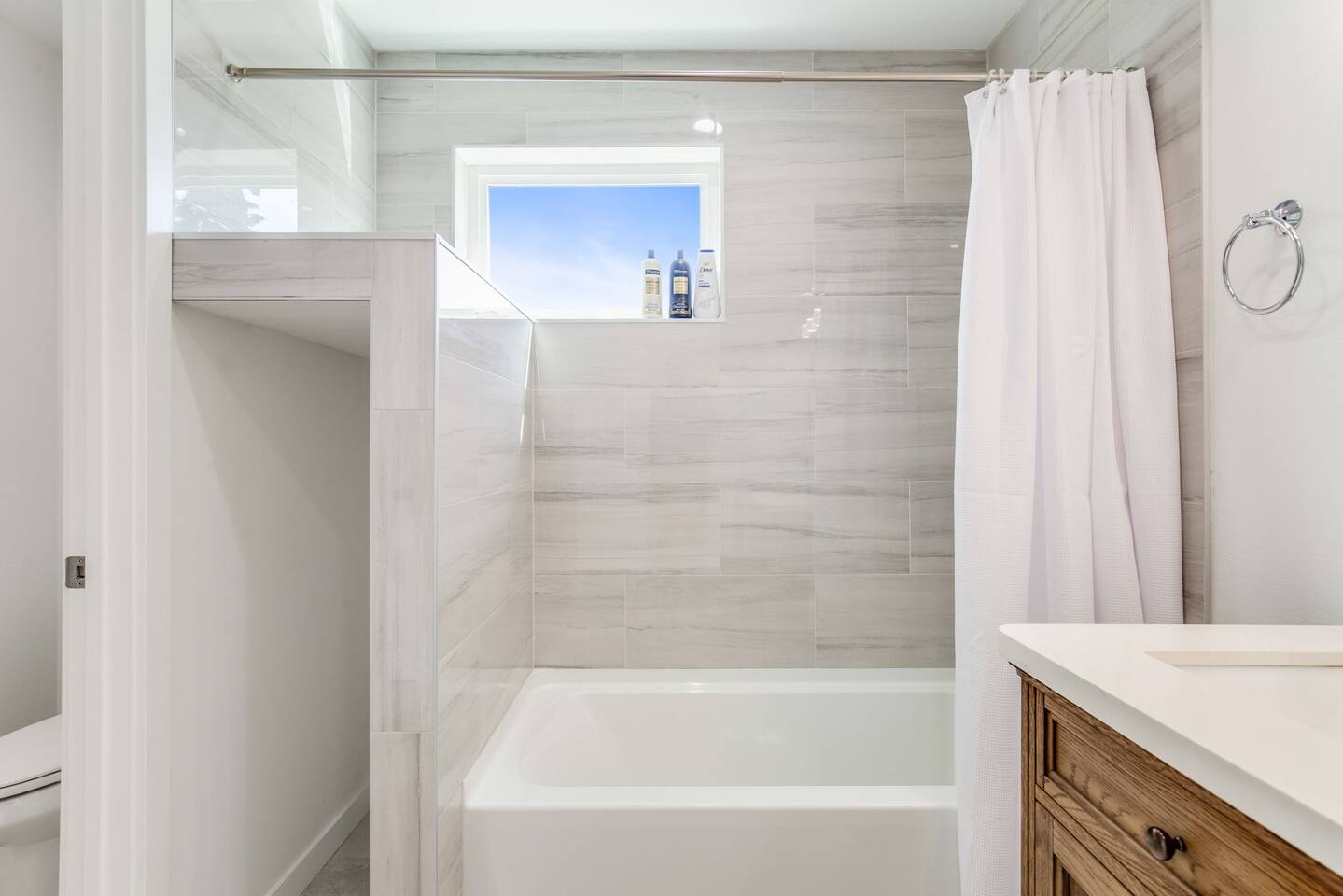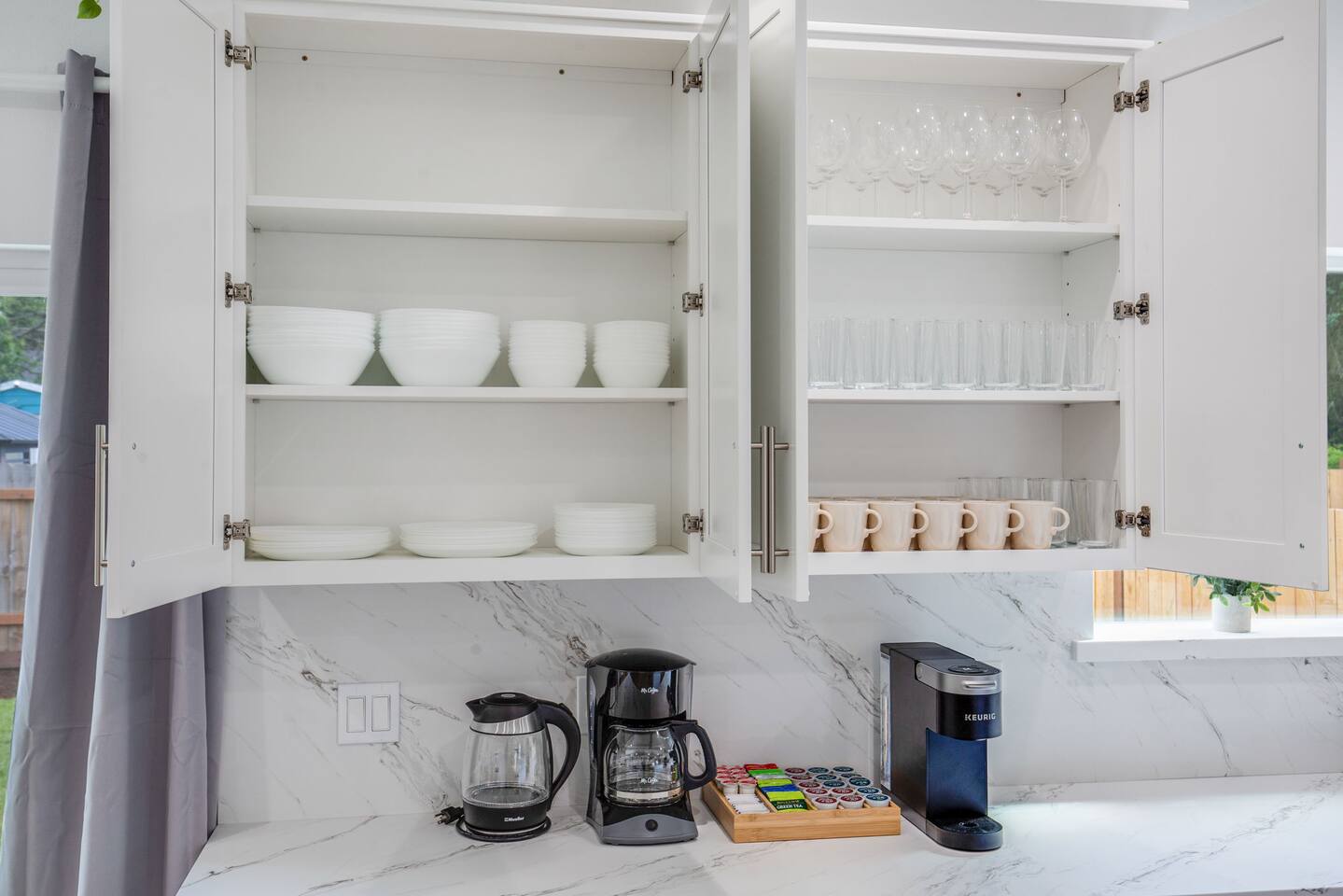 Beautiful 2-level 2600 sq ft single family home with a main home, and an attached mother in law unit with separate kitchen with combined 5 bedrooms, 4 bathrooms. Has a rare central AC for summer! We are 15 mins drive to all of Seattle's best attractions including Capitol Hill, Pike Place market, Space needle. This is the perfect place for large groups to immerse themselves in the central vibe of Seattle, and work from home. This beautiful luxury home offers high-end amenities through and through! Relax at the end of your day in spacious living room w/ high end furniture, hotel-grade luxury bedding with fresh white linens & fluffy duvets. Free three car parking in driveway and plenty of street parking! Home Layout: [First Floor] - Home Entrance - Living Room w/ two sofas and 65'' TV - Dining Table (seats 10 people) - Breakfast table (seats 4 people) - Kitchen with island - Washer dryer - Bathroom #1: Full bathroom w/ Tub [Second floor]: - Bedroom #1: Two queen beds w/ attached bathroom #2 - Bathroom #2 Full bathroom w/ tub - Bedroom #2: One queen bed - Bedroom #3: One queen bed - Bedroom #4: One queen bed - Bathroom #3: Full bathroom w/tub [Studio unit on first floor] - Second kitchen - Dining table with 3 chairs - Bedroom #5: One queen bed - 55' TV - Bathroom #4: Full bathroom w/tub - Second washer dryer unit [Exterior] 1 car driveway for Honda HRV w/ 240V EV out (NEMA 14-50 outlet). Backyard Home Highlights: - Stylish interior design and beautiful furniture in a luxury home with high-end finishes. - Hotel grade bedding for a comfortable sleep - Fully-stocked kitchen with Keurig coffee maker and coffee pods, pots, pans, bowls, plates, glasses and utensils - 65'' Smart TV with Disney & Hulu (no Cable) - High-speed WIFI (upto 200 mpbs) - Washer/Dryer - Smarthome ready with electronic lock, and Ring security system. This house is close to everything: SeaTac airport -> 12 min drive Downtown Seattle Seattle -> 15 min drive Amazon Spheres -> 18 min drive CapHill -> 18 min drive Queen Anne/Space Needle -> 22 min drive