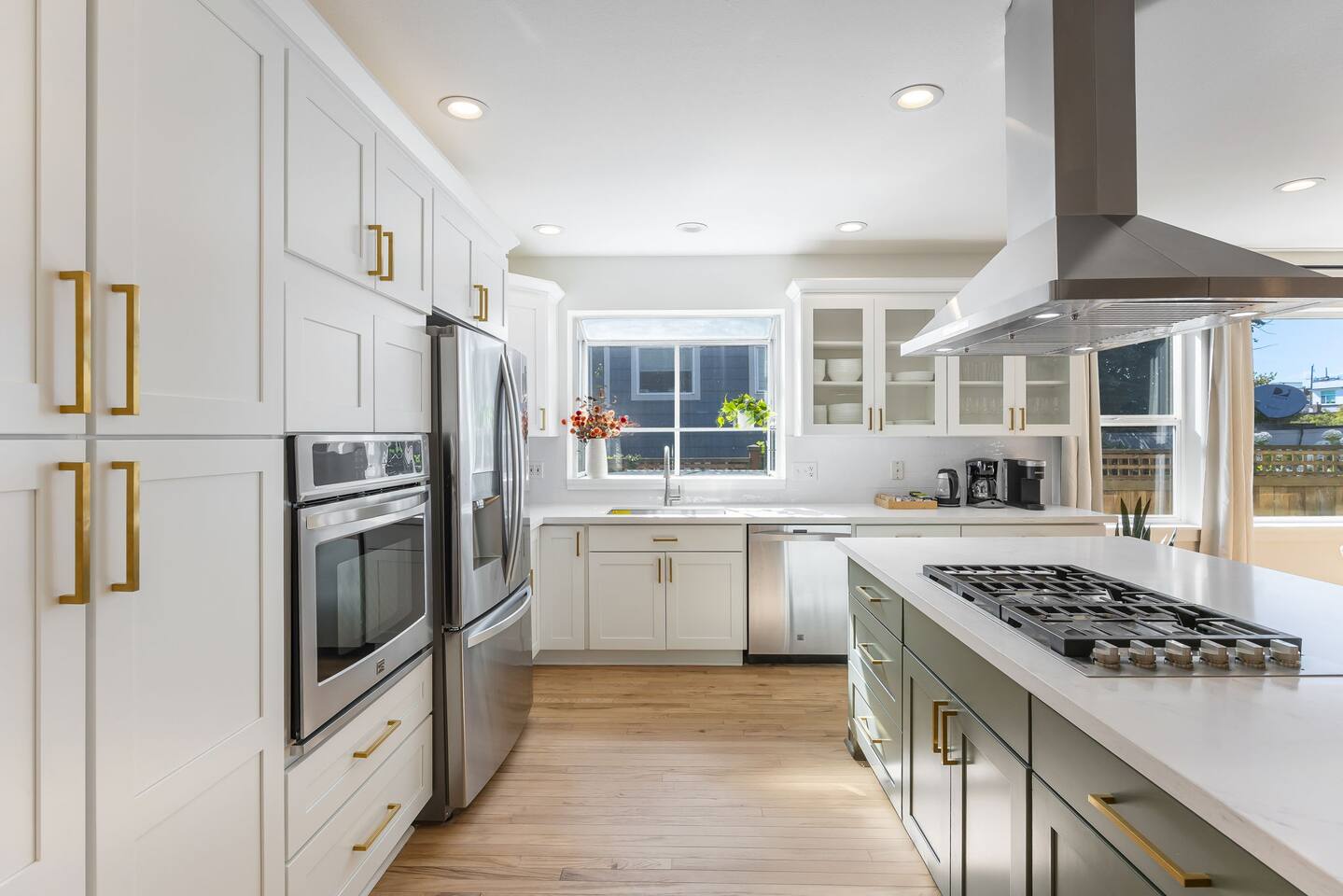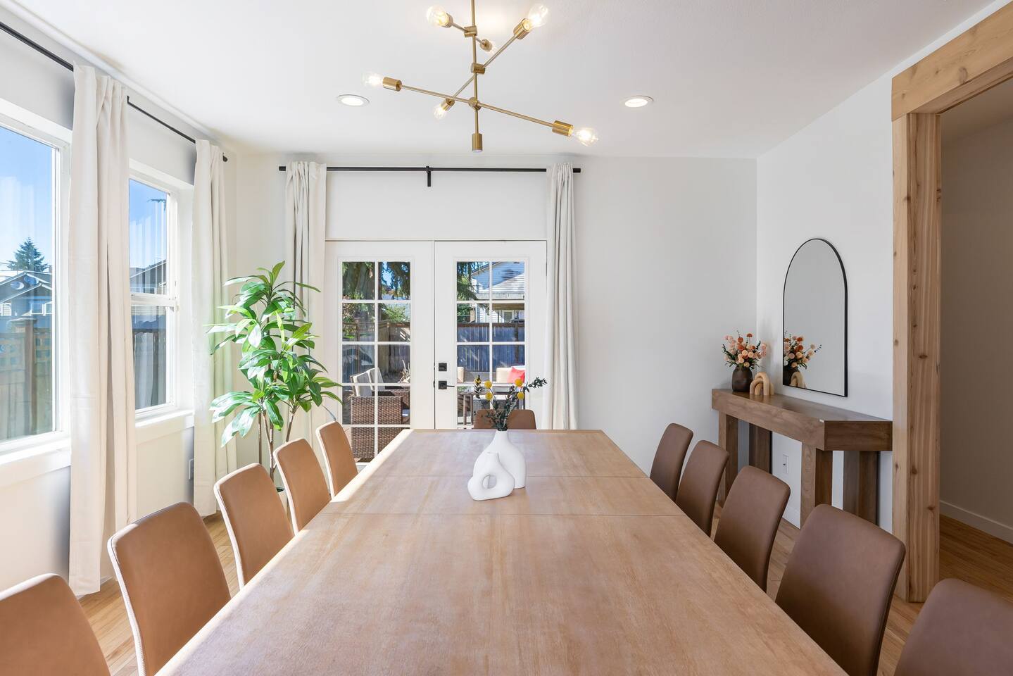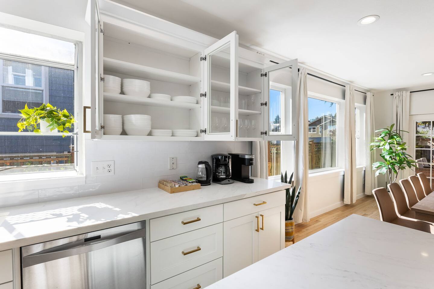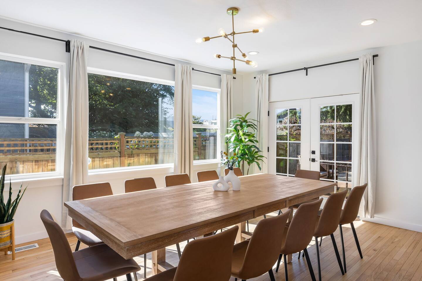 Beautiful 2-level 2500 sq ft single family home with 6 bedrooms, 3 bathrooms. We are 15 mins ride to all of Seattle's best attractions including Capitol Hill, Pike Place market, Space needle, T-mobile park. This is the perfect place for large groups to immerse themselves in the central vibe of Seattle. This beautiful home offers high-end amenities through and through! Relax at the end of your day in spacious living room w/ high end furniture, hotel-grade luxury bedding with fresh white linens & fluffy duvets. Free two car parking in driveway and plenty of street parking! Comes with rare central AC [First Floor]: - Home Entrance - Living Room w/ three sofas - Kitchen with island - Dining area with dining table (seats 14) - Bathroom #1: Full bathroom w/ tub - Bedroom #1: One queen bed - Bedroom #2: One queen bed [Second floor]: - Bedroom #3: One queen bed - Bedroom #4: One queen bed w/attached bathroom #2 -Bathroom #2: Full bathroom - Bedroom #5: Two queen beds - Bedroom #6: One queen bed - Bathroom #3: Full bathroom w/ shower [Exterior] Backyard with sofa Home Highlights: - Two dedicated parking spot in driveway - Stylish interior design and beautiful furniture in a luxury home with high-end finishes. - Hotel grade bedding for a comfortable sleep - Fully-stocked kitchen with Keurig coffee maker and coffee pods, pots, pans, bowls, plates, glasses and utensils - 65'' Smart TV with Hulu & Disney (no Cable) - High-speed WIFI (upto 1 Gbps) for all your working from home needs! - Washer/Dryer - Smarthome ready with electronic lock, and Ring security system. This house is close to everything: Capitol Hill -> 15 min drive Downtown Seattle/Pike Place Market -> 15 min drive Amazon Spheres -> 15 min drive Chinatown/International District -> 5 min drive T-mobile park -> 10 min drive Space Needle/Chihuly Glass museum/Olympic sculpture park -> 15 min Uber ride. Airport -> 25 min drive