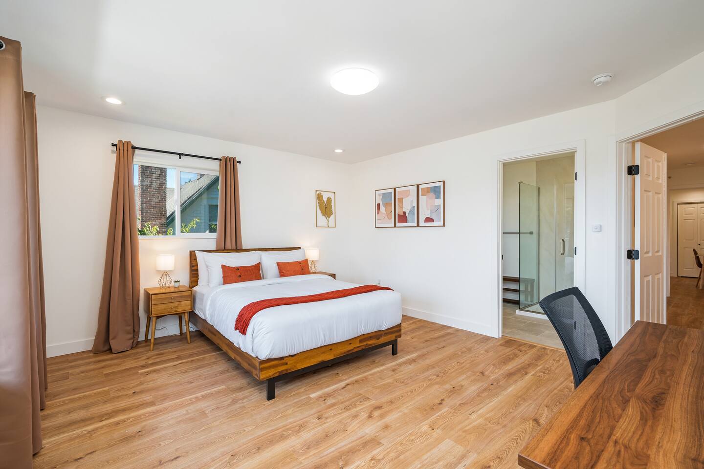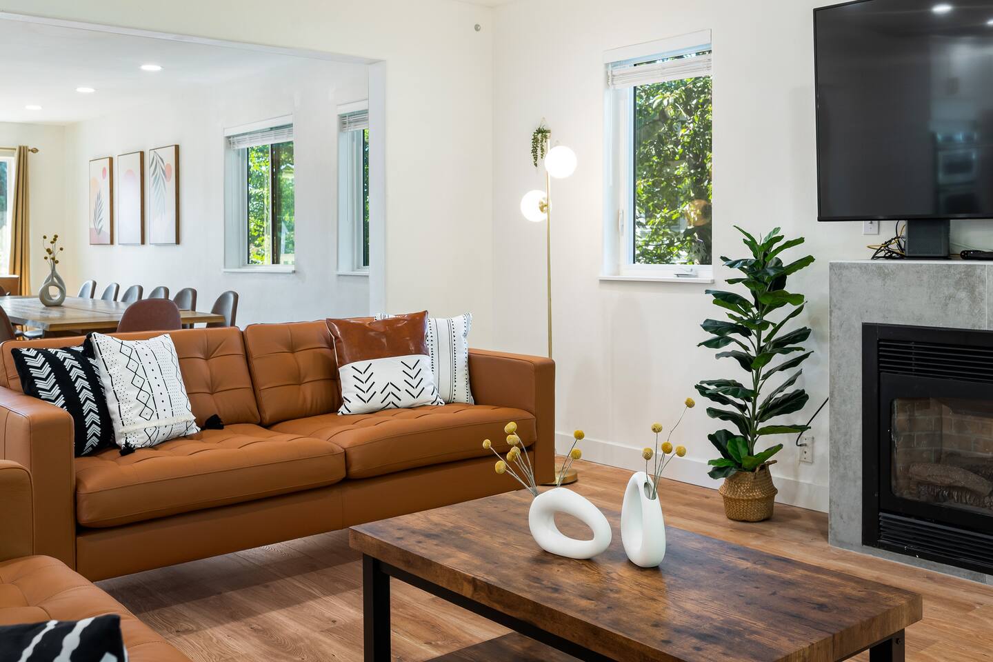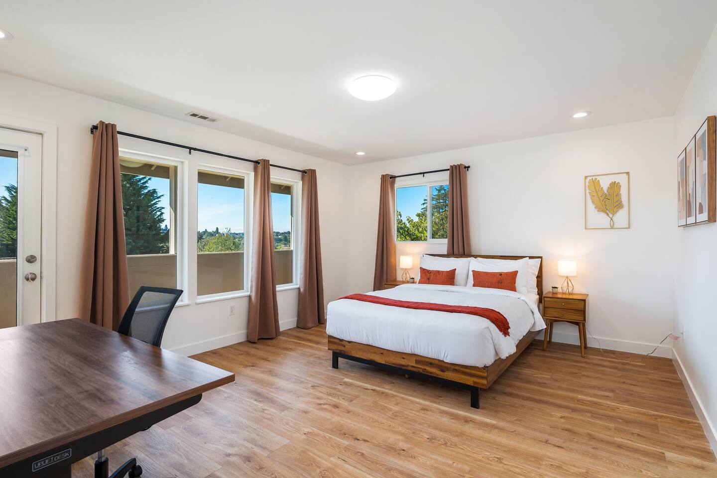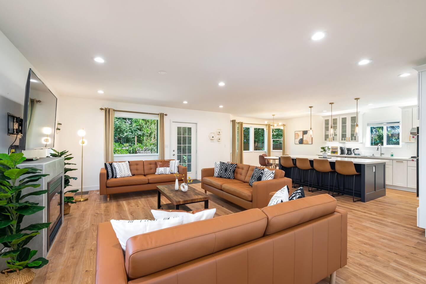 Beautiful 3-level 3600 sq ft single family home with 6 bedrooms, 4 bathrooms. We are 10 mins ride to all of Seattle's best attractions including Capitol Hill, Pike Place market, Space needle, T-mobile park. This is the perfect place for large groups to immerse themselves in the central vibe of Seattle, and work from home with 4 study desks. This beautiful luxury home offers high-end amenities through and through! Relax at the end of your day in spacious living room w/ high end furniture, hotel-grade luxury bedding with fresh white linens & fluffy duvets. Free one car parking in driveway and plenty of street parking! Home Layout: [Basement]: No AC as cooled by downdraft - Bedroom #6:Three queen beds w/ attached bathroom #3 and study desk - Garage: Guests do not have access to garage, and can only park in driveway [First Floor]: Two portable ACs - Home Entrance - Living Room w/ three sofas and 1 portable AC - Kitchen with island and breakfast table - Dining area with dining table (seats 14) and 1 portable AC - Bathroom #4: Standing shower - Bedroom #1: One queen bed w/ ceiling fan [Second floor]: Central AC - Bedroom #2: One queen bed - Bedroom #3: One queen bed w/study desk - Bedroom #4 (Master bedroom): One queen bed w/ attached bathroom #1 and study desk - Bedroom #5: One queen bed - Bathroom #1 (master bathroom): Full bathroom w/standing shower - Bathroom #2: Full bathroom w/ tub and washer/dryer [Exterior] Backyard with sofa Home Highlights: - One dedicated parking spot in driveway - Stylish interior design and beautiful furniture in a luxury home with high-end finishes. - Hotel grade bedding for a comfortable sleep - Fully-stocked kitchen with Keurig coffee maker and coffee pods, pots, pans, bowls, plates, glasses and utensils - 65'' Smart TV with Hulu & Disney (no Cable) - High-speed WIFI (upto 1 Gbps) for all your working from home needs! - Washer/Dryer - Smarthome ready with electronic lock, and Ring security system. This house is close to everything: Capitol Hill -> 10 min drive Downtown Seattle/Pike Place Market -> 10 min drive Amazon Spheres -> 10 min drive Chinatown/International District -> 5 min drive T-mobile park -> 10 min drive Space Needle/Chihuly Glass museum/Olympic sculpture park -> 15 min Uber ride. Airport -> 25 min drive