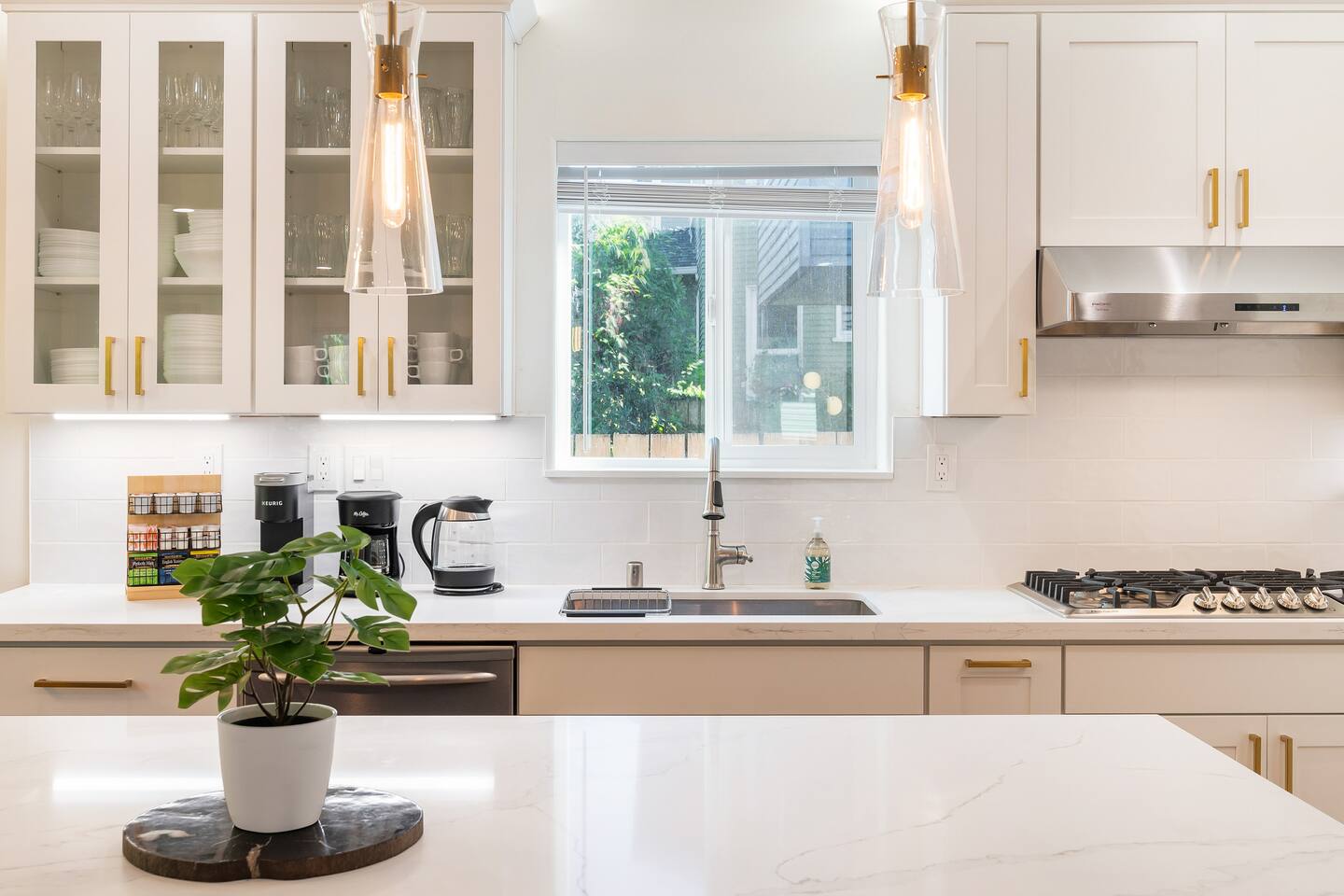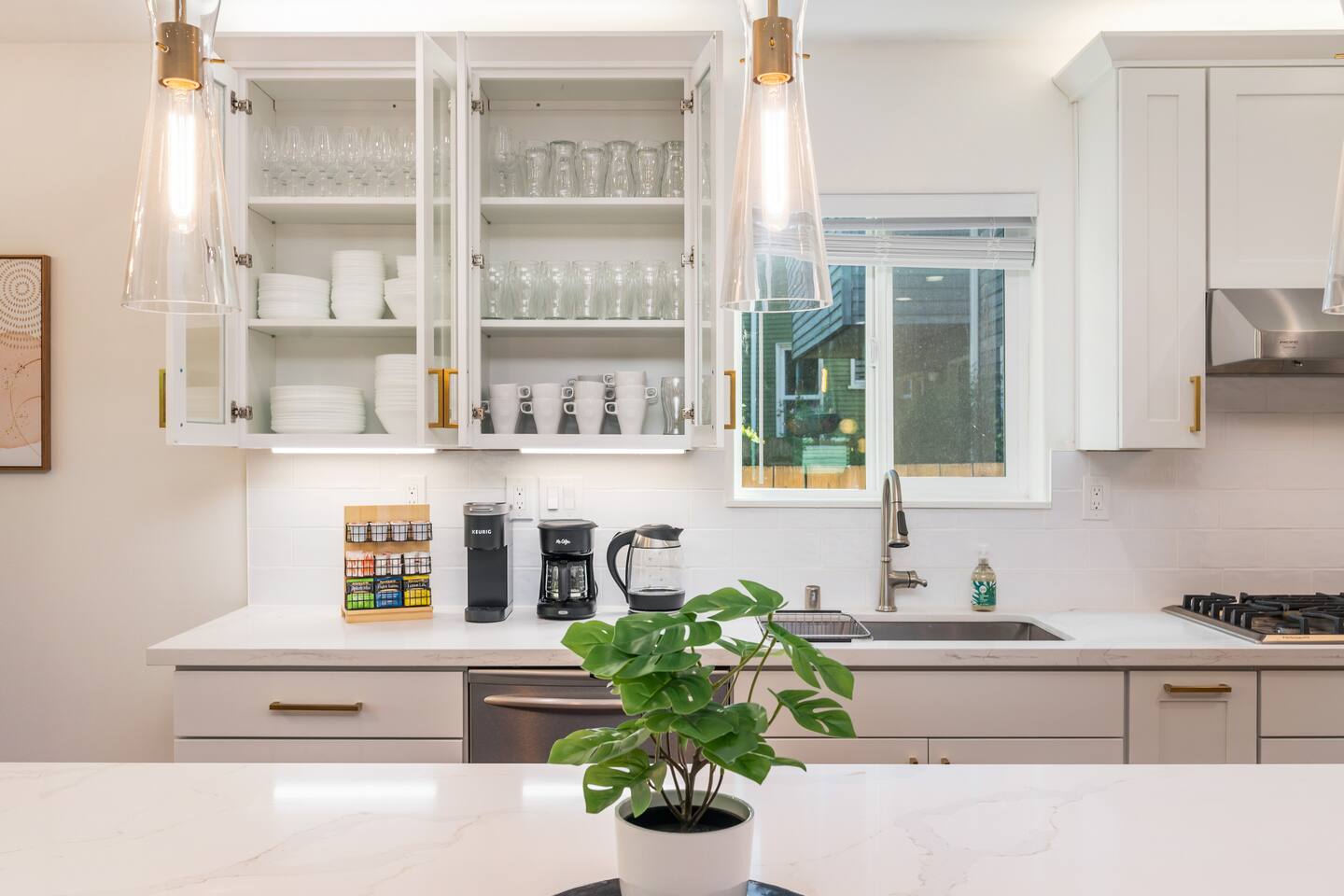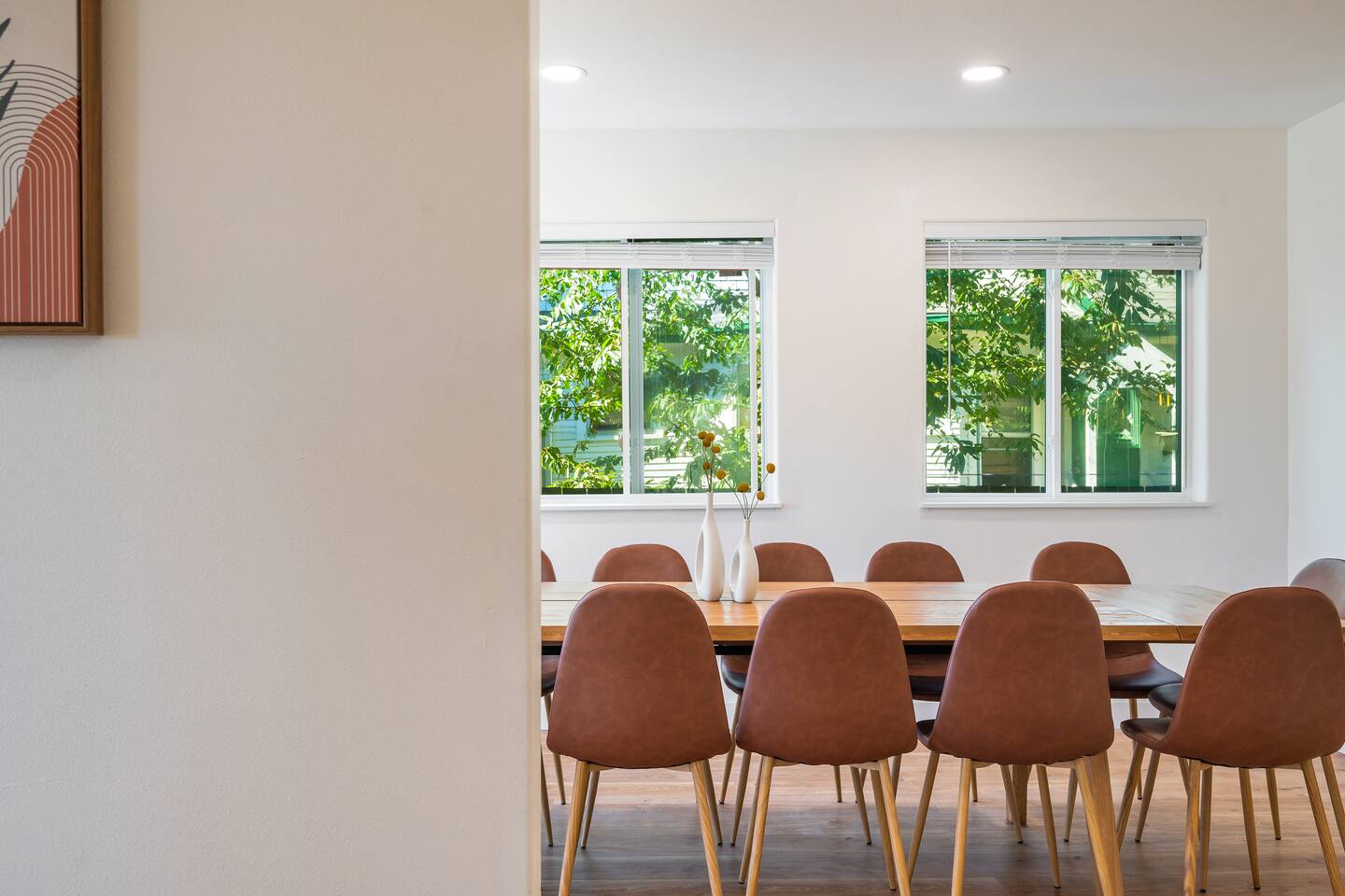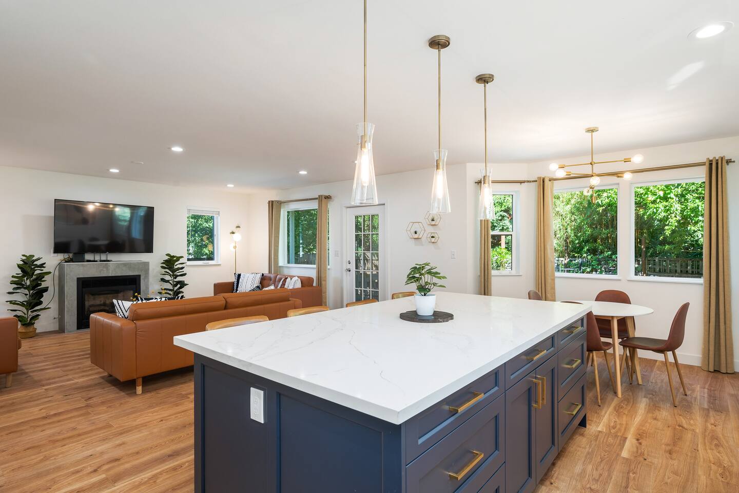 Beautiful 3-level 3600 sq ft single family home with 6 bedrooms, 4 bathrooms. We are 10 mins ride to all of Seattle's best attractions including Capitol Hill, Pike Place market, Space needle, T-mobile park. This is the perfect place for large groups to immerse themselves in the central vibe of Seattle, and work from home with 4 study desks. This beautiful luxury home offers high-end amenities through and through! Relax at the end of your day in spacious living room w/ high end furniture, hotel-grade luxury bedding with fresh white linens & fluffy duvets. Free one car parking in driveway and plenty of street parking! Home Layout: [Basement]: No AC as cooled by downdraft - Bedroom #6:Three queen beds w/ attached bathroom #3 and study desk - Garage: Guests do not have access to garage, and can only park in driveway [First Floor]: Two portable ACs - Home Entrance - Living Room w/ three sofas and 1 portable AC - Kitchen with island and breakfast table - Dining area with dining table (seats 14) and 1 portable AC - Bathroom #4: Standing shower - Bedroom #1: One queen bed w/ ceiling fan [Second floor]: Central AC - Bedroom #2: One queen bed - Bedroom #3: One queen bed w/study desk - Bedroom #4 (Master bedroom): One queen bed w/ attached bathroom #1 and study desk - Bedroom #5: One queen bed - Bathroom #1 (master bathroom): Full bathroom w/standing shower - Bathroom #2: Full bathroom w/ tub and washer/dryer [Exterior] Backyard with sofa Home Highlights: - One dedicated parking spot in driveway - Stylish interior design and beautiful furniture in a luxury home with high-end finishes. - Hotel grade bedding for a comfortable sleep - Fully-stocked kitchen with Keurig coffee maker and coffee pods, pots, pans, bowls, plates, glasses and utensils - 65'' Smart TV with Hulu & Disney (no Cable) - High-speed WIFI (upto 1 Gbps) for all your working from home needs! - Washer/Dryer - Smarthome ready with electronic lock, and Ring security system. This house is close to everything: Capitol Hill -> 10 min drive Downtown Seattle/Pike Place Market -> 10 min drive Amazon Spheres -> 10 min drive Chinatown/International District -> 5 min drive T-mobile park -> 10 min drive Space Needle/Chihuly Glass museum/Olympic sculpture park -> 15 min Uber ride. Airport -> 25 min drive