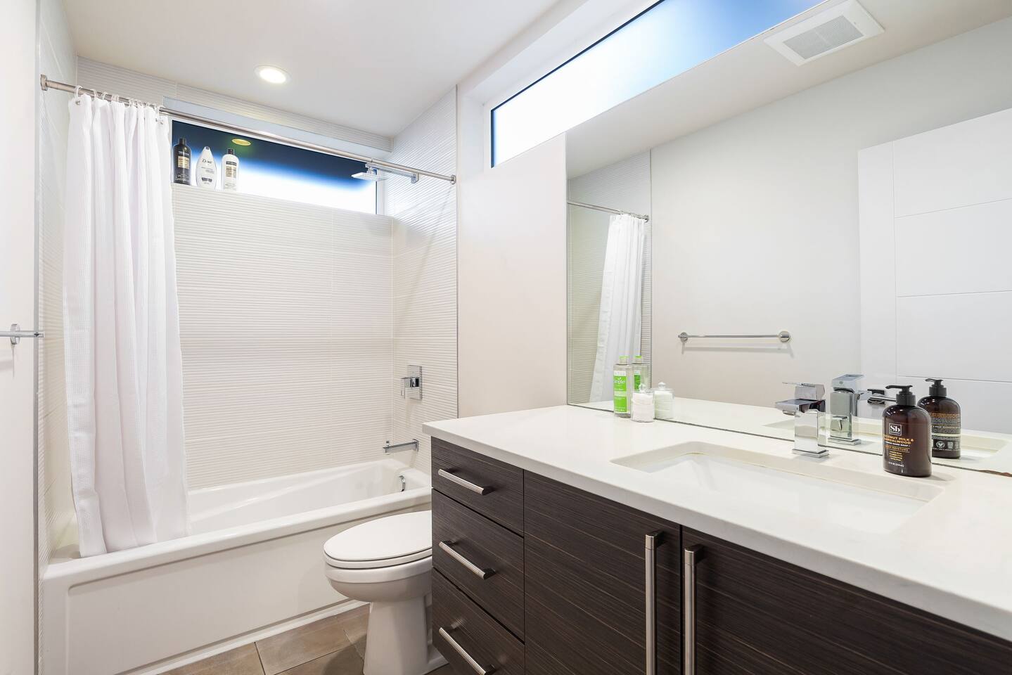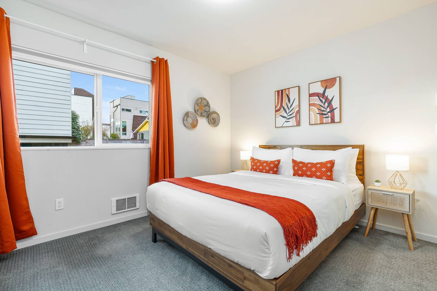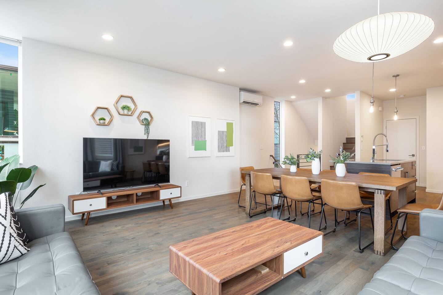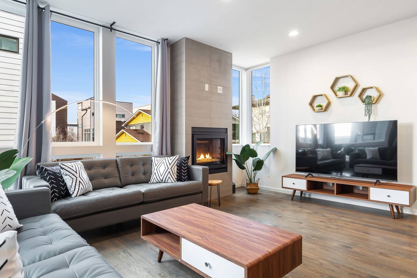 Find yourself nestled minutes drive away from downtown Ballard, close to the beautiful green lake area, and a quick Uber ride away from the Space Needle and Pikeplace. This home is the perfect spot to relax with friends and family after a day of exploring or WFH. Free parking available. Welcome home! Home Layout: [First Floor]: No portable AC, only fans as first floor is cooled by downdraft - Bedroom #1: One queen bed - Bedroom #2: One queen bed - Bathroom #1 [Second Floor]: portable AC - Living room with two sofas - Kitchen with dining table - Bathroom #2: Half bathroom [Third Floor]: portable AC - Bedroom #3: One queen bed - Bedroom #4: Two queen beds with attached bathroom [Others] - 1 parking spot - Deck on the 4th floor with outdoor furniture Home Highlights: - Stylish interior design and beautiful furniture in a luxury home with high-end finishes. - Hotel grade bedding for a comfortable sleep - Fully-stocked kitchen with Keurig coffee maker and coffee pods, pots, pans, bowls, plates, glasses and utensils - Smart TV with Hulu & Disney (no Cable) - High-speed WIFI (upto 1 Gbps) for all your working from home needs! - Heated flooring on first floor - wow! - Washer/Dryer - Smarthome ready with Nest, electronic lock, and Ring security system. This beautiful luxury home offers high-end amenities through and through. Conveniently situated in Ballard with breathtaking city views with Mt Rainer and Olympic mountain views visible on clear days. This architectural beauty is the perfect spot from which to explore Seattle's hottest attractions! Downtown Ballard -> 5 min walk Woodland Zoo/Greenlake -> 30 min walk or 7 min Uber ride Space Needle/Chihuly Glass museum/Olympic sculpture park -> 15 min Uber ride. Pike Place Market -> 20 min Uber ride. Amazon Spheres -> 20min Uber ride Airport -> 33 min drive