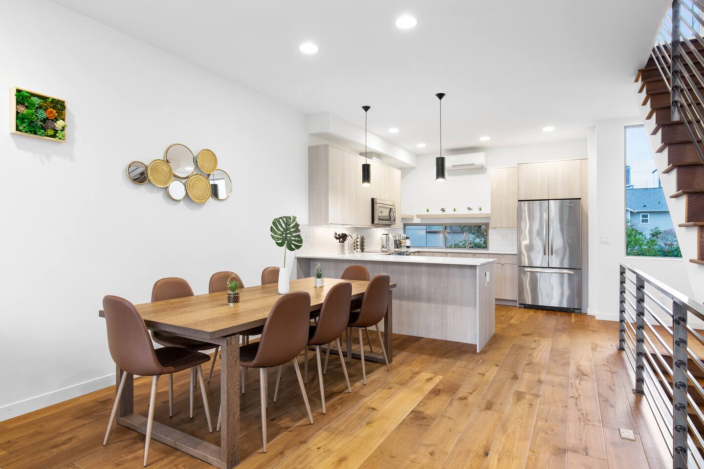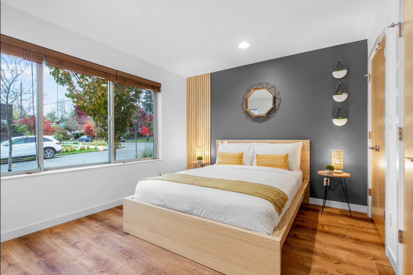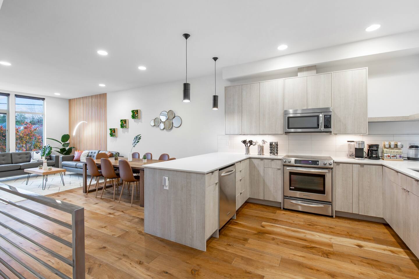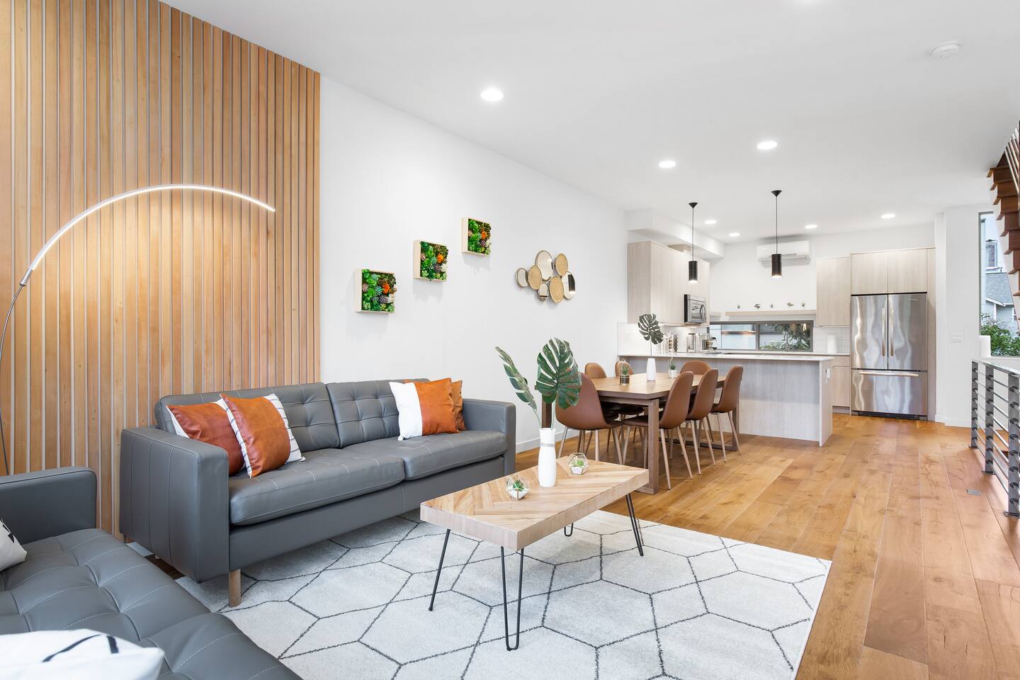 Find yourself nestled minutes drive away from downtown Ballard, close to the beautiful green lake area, and a quick Uber ride away from the Space Needle and Pikeplace. This home is the perfect spot to relax with friends and family after a day of exploring or WFH. Free parking available. Welcome home! Home Layout: [First Floor]: No AC as cooled by downdraft - Bedroom #1: One queen bed - Bedroom #2: One queen bed - One bathroom with bath tub [Second Floor]: Ductless mini split AC - Living room with two sofas - Kitchen with dining table [Third Floor]: Portable AC - Bedroom #3: Two queen beds with attached bathroom - Small patio outside of Bedroom #3 [Others] - 1 parking spot in the back - Deck on the 4th floor with outdoor furniture Home Highlights: - Stylish interior design and beautiful furniture in a luxury home with high-end finishes. - Hotel grade bedding for a comfortable sleep - Fully-stocked kitchen with Keurig K-cup coffee maker and coffee cups, pans, bowls, plates, glasses and utensils - Smart TV with Hulu & Disney (no Cable) - High-speed WIFI (upto 1 Gbps) for all your working from home needs! - Washer/Dryer This beautiful luxury home offers high-end amenities through and through. Conveniently situated in Ballard with breathtaking views of Mt Rainer visible on clear days. This architectural beauty is the perfect spot from which to explore Seattle's hottest attractions! Downtown Ballard -> 5 min drive Woodland Zoo/Greenlake -> 10 min Uber ride Space Needle/Chihuly Glass museum/Olympic sculpture park -> 18 min Uber ride. Pike Place Market -> 20 min Uber ride. Amazon Spheres -> 20min Uber ride Airport -> 35 min drive