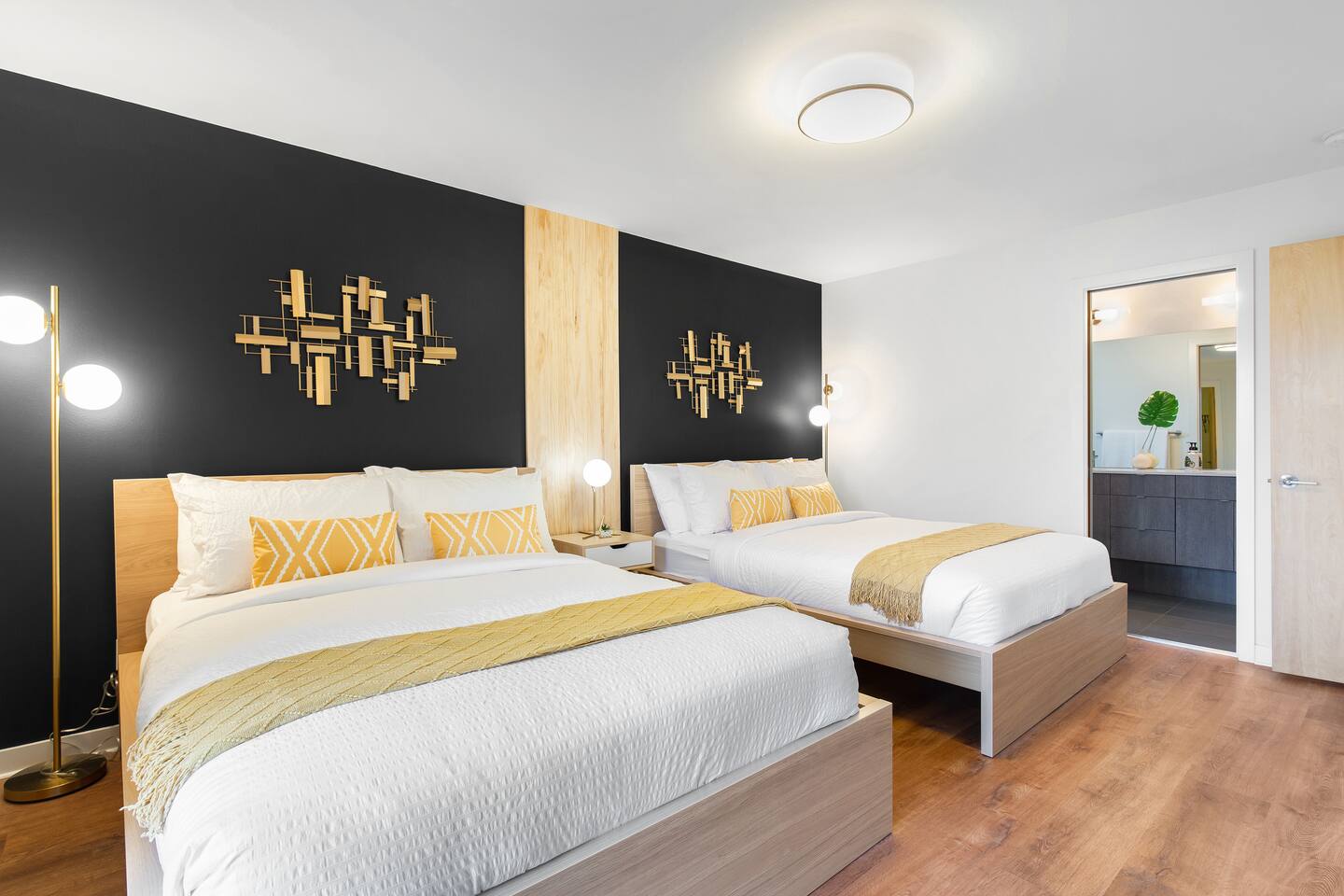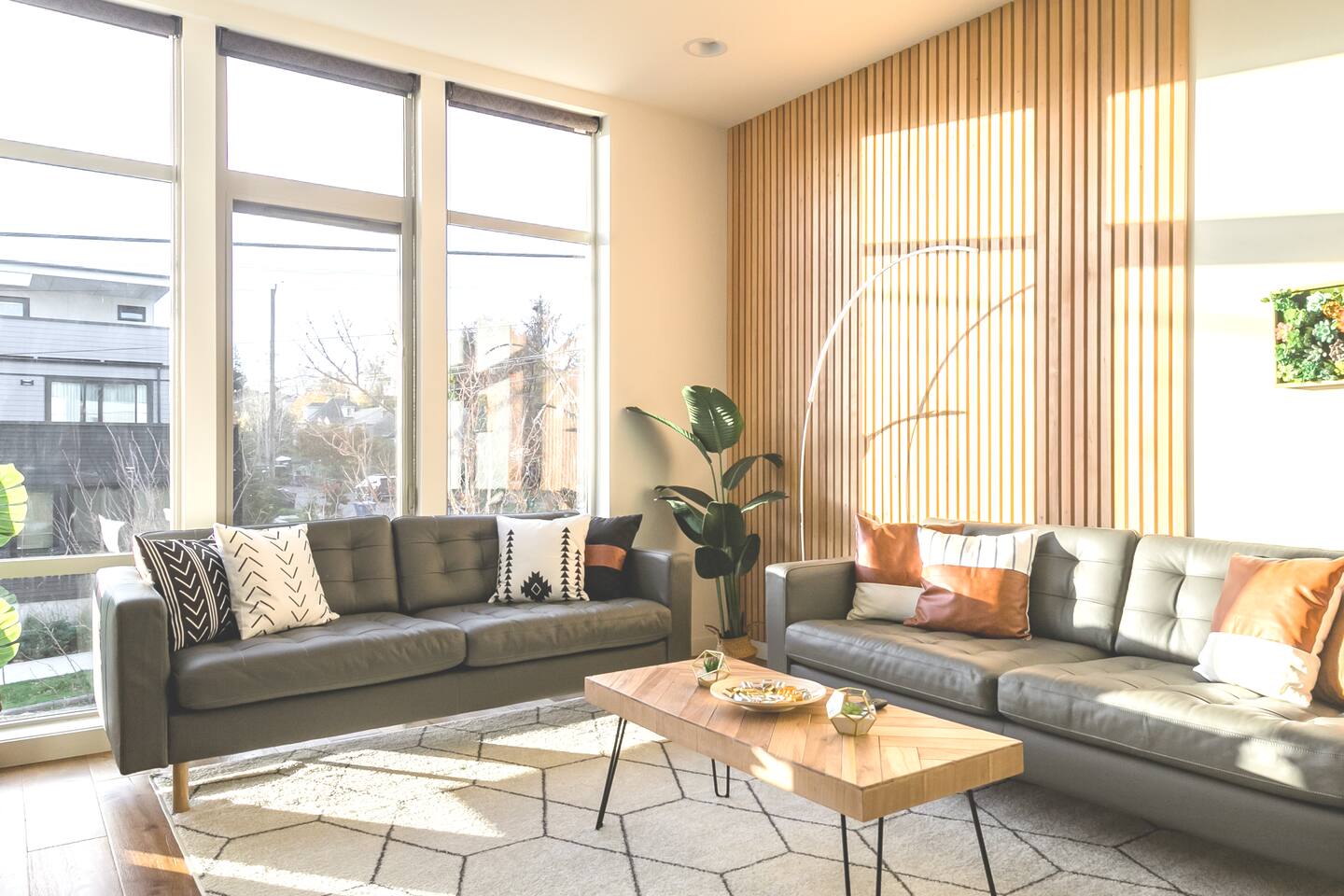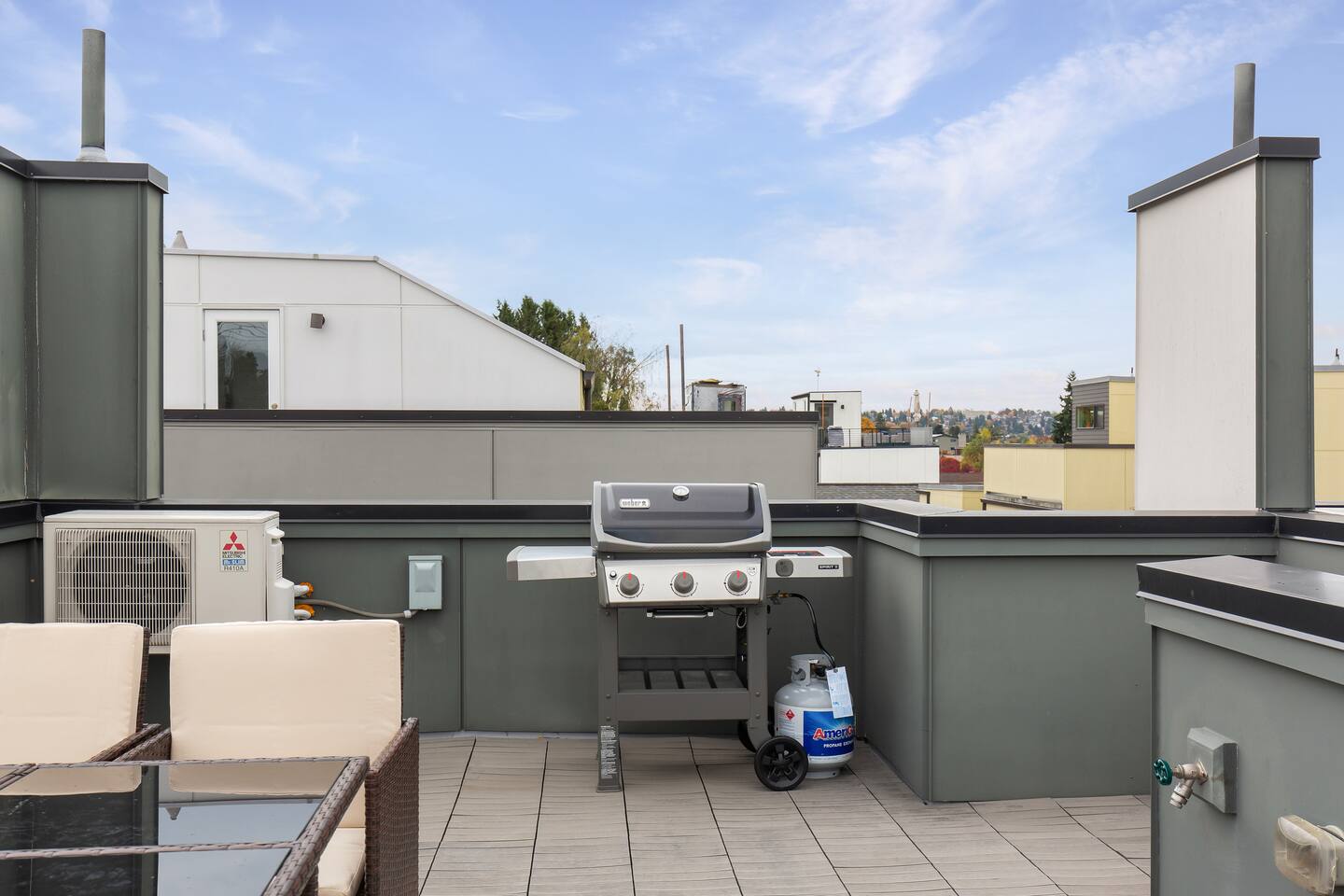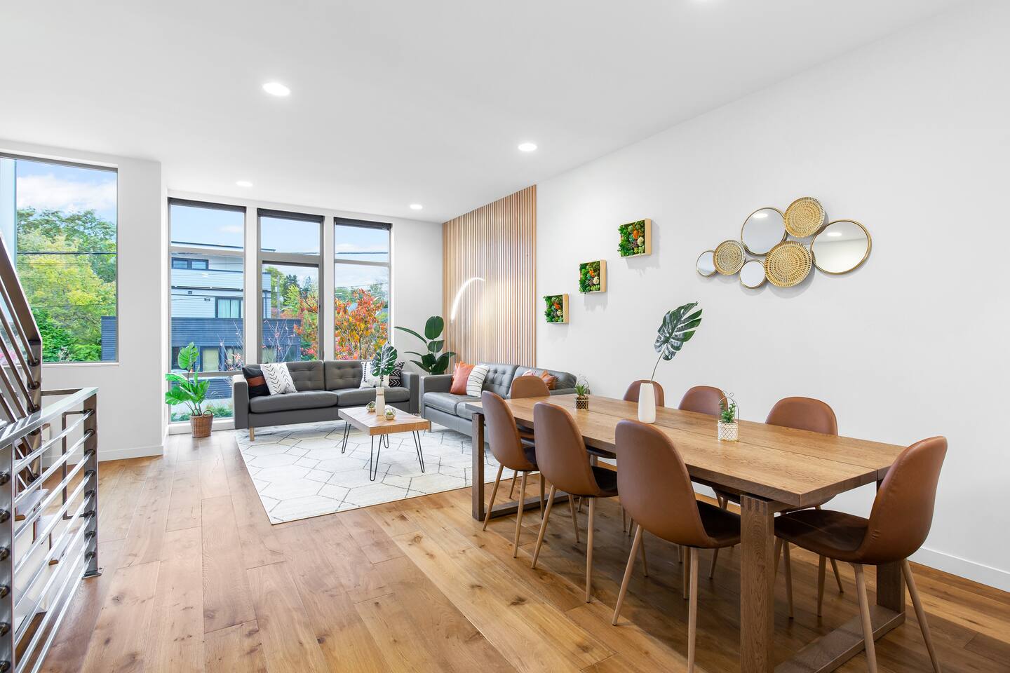 Find yourself nestled minutes drive away from downtown Ballard, close to the beautiful green lake area, and a quick Uber ride away from the Space Needle and Pikeplace. This home is the perfect spot to relax with friends and family after a day of exploring or WFH. Free parking available. Welcome home! Home Layout: [First Floor]: No AC as cooled by downdraft - Bedroom #1: One queen bed - Bedroom #2: One queen bed - One bathroom with bath tub [Second Floor]: Ductless mini split AC - Living room with two sofas - Kitchen with dining table [Third Floor]: Portable AC - Bedroom #3: Two queen beds with attached bathroom - Small patio outside of Bedroom #3 [Others] - 1 parking spot in the back - Deck on the 4th floor with outdoor furniture Home Highlights: - Stylish interior design and beautiful furniture in a luxury home with high-end finishes. - Hotel grade bedding for a comfortable sleep - Fully-stocked kitchen with Keurig K-cup coffee maker and coffee cups, pans, bowls, plates, glasses and utensils - Smart TV with Hulu & Disney (no Cable) - High-speed WIFI (upto 1 Gbps) for all your working from home needs! - Washer/Dryer This beautiful luxury home offers high-end amenities through and through. Conveniently situated in Ballard with breathtaking views of Mt Rainer visible on clear days. This architectural beauty is the perfect spot from which to explore Seattle's hottest attractions! Downtown Ballard -> 5 min drive Woodland Zoo/Greenlake -> 10 min Uber ride Space Needle/Chihuly Glass museum/Olympic sculpture park -> 18 min Uber ride. Pike Place Market -> 20 min Uber ride. Amazon Spheres -> 20min Uber ride Airport -> 35 min drive