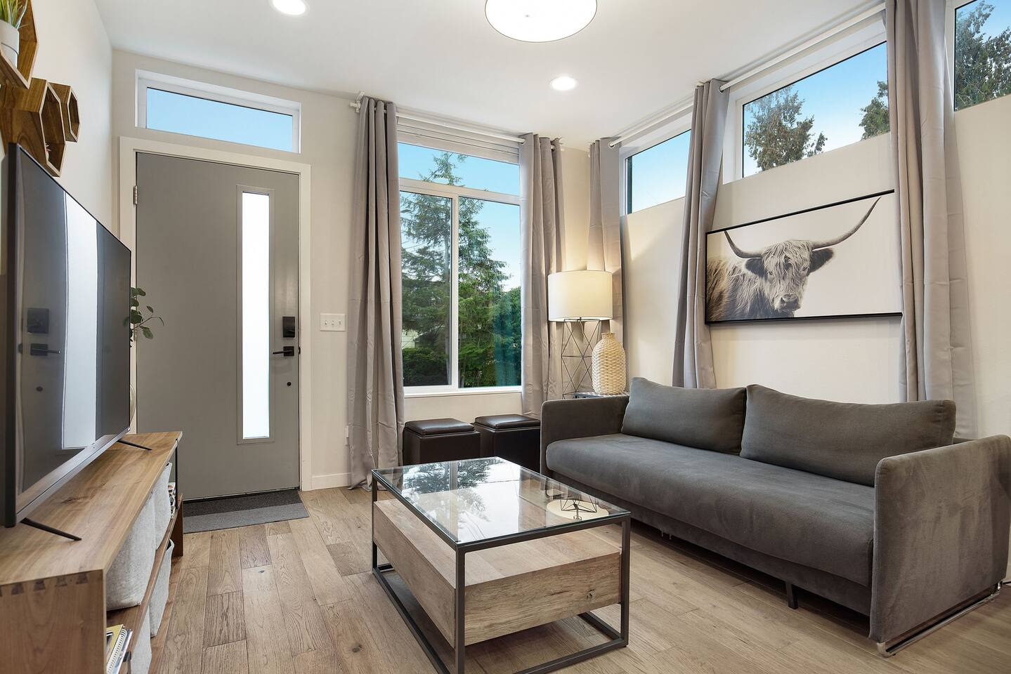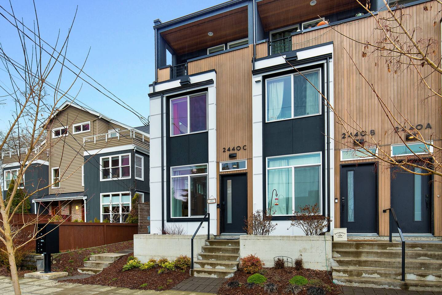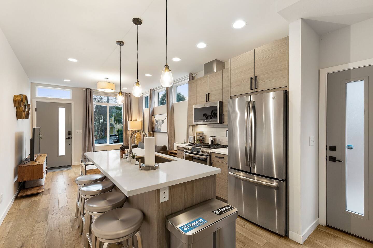 Beautiful 4-level 1400 sqft townhouse with 3 bedrooms and lots of sunlight. Find yourself nestled minutes drive away from downtown Ballard, close to the beautiful green lake area, and a quick Uber ride away from the Space Needle and Pikeplace. This beautiful luxury home offers high-end amenities through and through! Free one dedicated car parking! This home is the perfect spot to relax with friends and family after a day of exploring or WFH. Free parking available. Welcome home! Home Layout: [First Floor] - Living room with sofa - Kitchen with island [Second Floor] - Bedroom #1: One queen bed - Bathroom #1: Full bathroom w/ tub - Bedroom #2: One queen bed [Third Floor] - Bedroom #3: One queen bed - Bathroom #2: Full bathroom w/ standing shower [Fourth floor] - Rooftop deck Home Highlights: - One dedicated parking spot - Stylish interior design and beautiful furniture in a luxury home with high-end finishes. - Hotel grade bedding for a comfortable sleep - Fully-stocked kitchen with Keurig coffee maker and coffee pods, pots, pans, bowls, plates, glasses and utensils - 55'' Smart TV with Hulu & Disney (no Cable) - High-speed WIFI (upto 1 Gbps) for all your working from home needs! - Washer/Dryer - Smarthome ready with electronic lock. This house is close to everything: Downtown Ballard -> 5 min drive Woodland Zoo/Greenlake -> 10 min Uber ride Space Needle/Chihuly Glass museum/Olympic sculpture park -> 18 min Uber ride. Pike Place Market -> 20 min Uber ride. Amazon Spheres -> 20min Uber ride Airport -> 35 min drive