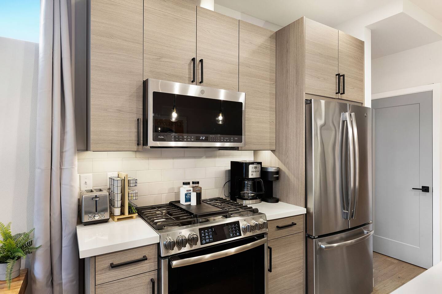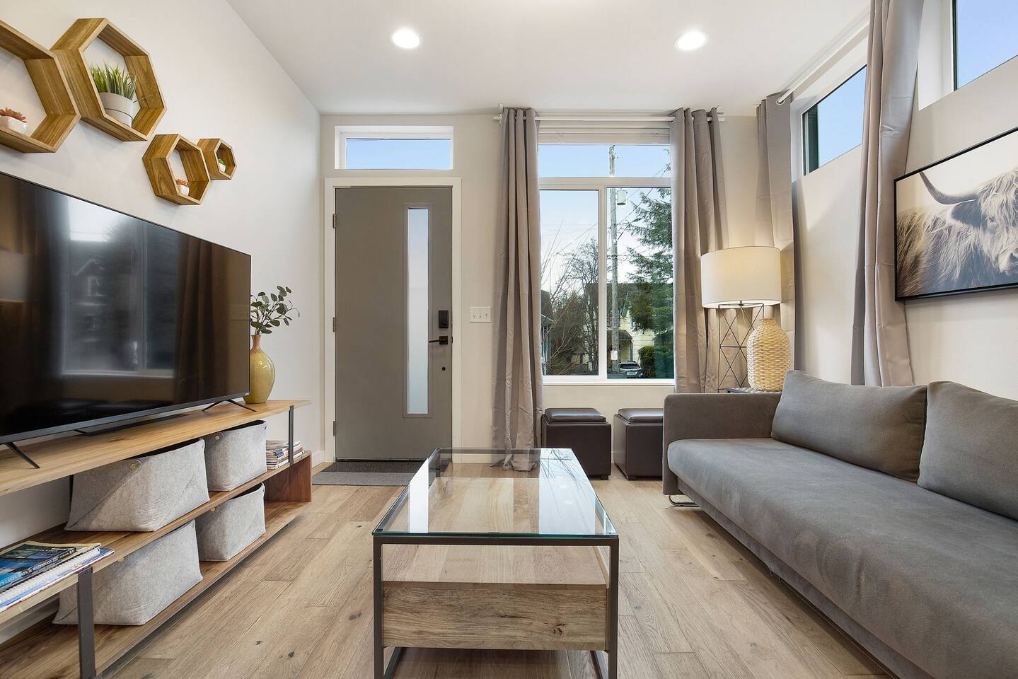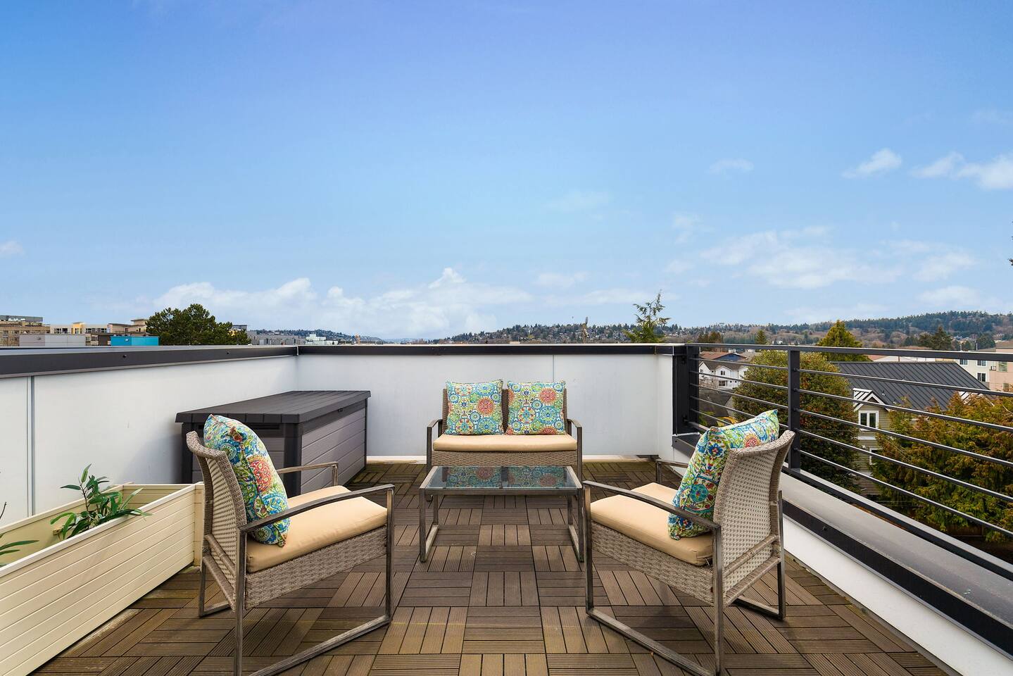 Beautiful 4-level 1400 sqft townhouse with 3 bedrooms and lots of sunlight. Find yourself nestled minutes drive away from downtown Ballard, close to the beautiful green lake area, and a quick Uber ride away from the Space Needle and Pikeplace. This beautiful luxury home offers high-end amenities through and through! Free one dedicated car parking! This home is the perfect spot to relax with friends and family after a day of exploring or WFH. Free parking available. Welcome home! Home Layout: [First Floor] - Living room with sofa - Kitchen with island [Second Floor] - Bedroom #1: One queen bed - Bathroom #1: Full bathroom w/ tub - Bedroom #2: One queen bed [Third Floor] - Bedroom #3: One queen bed - Bathroom #2: Full bathroom w/ standing shower [Fourth floor] - Rooftop deck Home Highlights: - One dedicated parking spot - Stylish interior design and beautiful furniture in a luxury home with high-end finishes. - Hotel grade bedding for a comfortable sleep - Fully-stocked kitchen with Keurig coffee maker and coffee pods, pots, pans, bowls, plates, glasses and utensils - 55'' Smart TV with Hulu & Disney (no Cable) - High-speed WIFI (upto 1 Gbps) for all your working from home needs! - Washer/Dryer - Smarthome ready with electronic lock. This house is close to everything: Downtown Ballard -> 5 min drive Woodland Zoo/Greenlake -> 10 min Uber ride Space Needle/Chihuly Glass museum/Olympic sculpture park -> 18 min Uber ride. Pike Place Market -> 20 min Uber ride. Amazon Spheres -> 20min Uber ride Airport -> 35 min drive