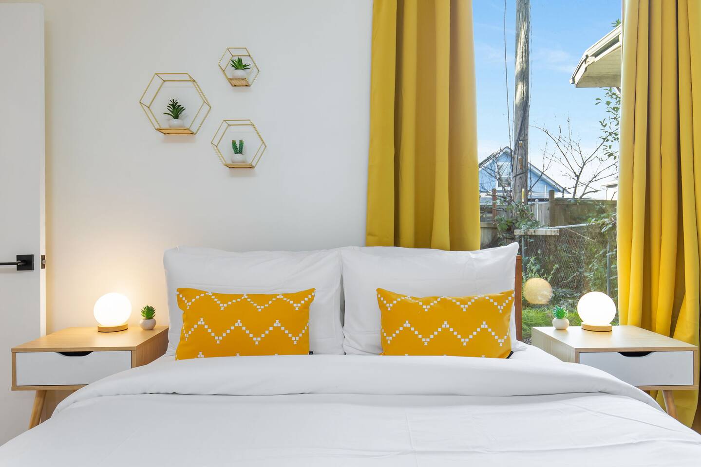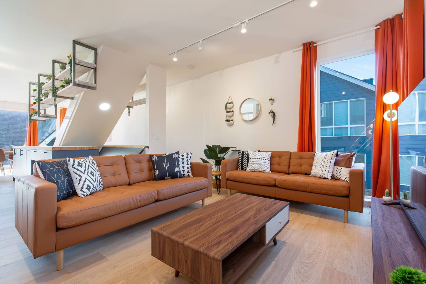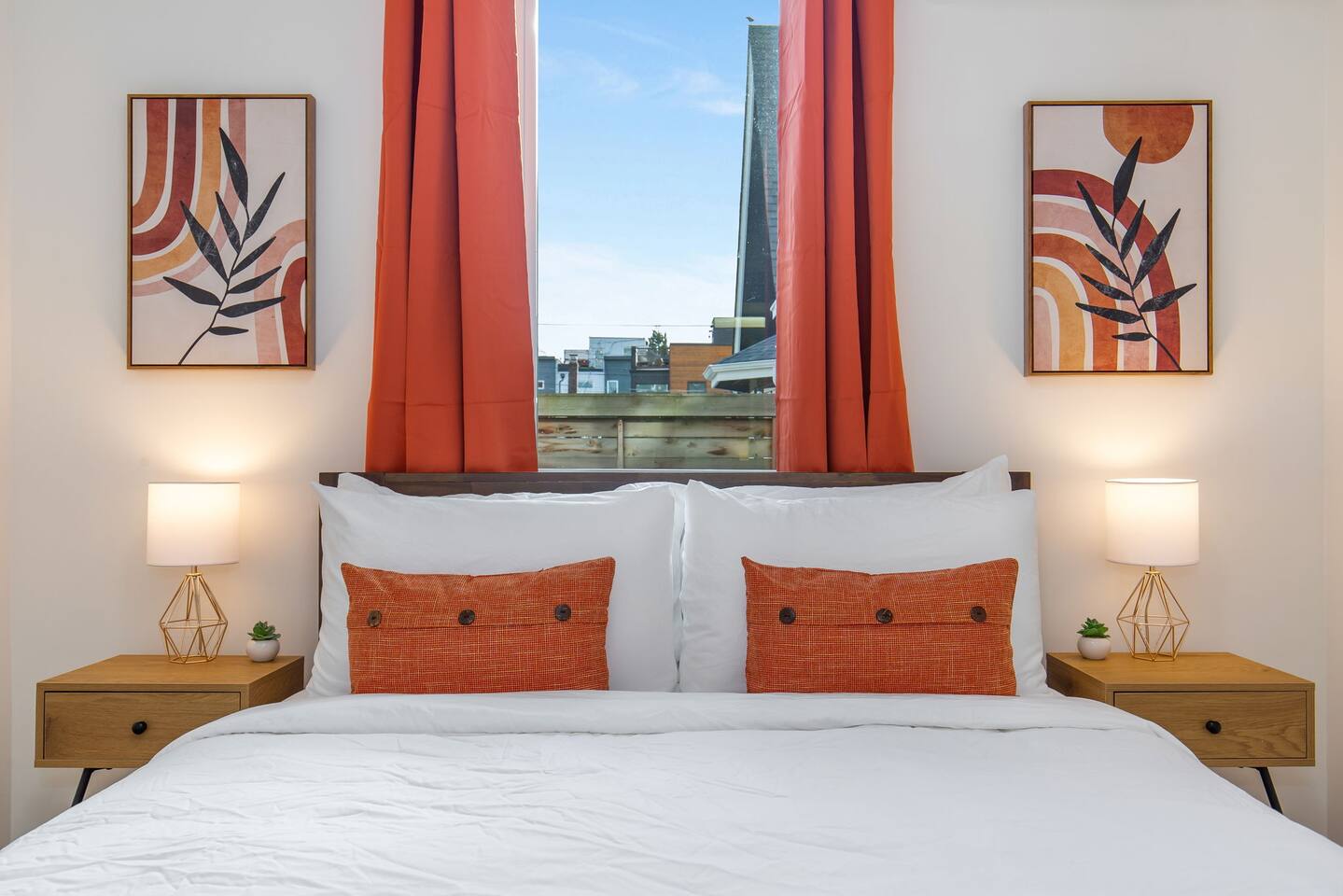 Beautiful 4-level 2200sq ft townhouse with 4 bedrooms, 6 queen beds and lots of sunlight. We are a short walk to Capitol Hill and its fabulous award winning restaurants and a quick Uber ride to Pike Place Market, SLU, Queen Anne This is the perfect place for tourists to immerse themselves in the central vibe of Seattle. This beautiful luxury home offers high-end amenities through and through! Free one car parking! Lay back on the rooftop deck with views of Seattle downtown skyline. Relax at the end of your day in high end furniture in your spacious living & dining room, hotel-grade luxury bedding with fresh white linens & fluffy duvets. Home Layout: [First Floor] - Bedroom #1: Two queen beds w/ attached bathroom #1 - Bedroom #2: One queen bed w/ detached bathroom #2 - Bathroom #1: Full bathroom w/ tub - Bathroom #2: Full bathroom w/tub [Second Floor] - Living room with three sofas - Kitchen with dining table (seats 12) [Third Floor] - Bedroom #3: One queen bed w/attached bathroom #3 - Bedroom #4: Two queen beds w/attached bathroom #4 - Bathroom #3: Full bathroom w/ standing shower - Bathroom #4: Full bathroom w/standing shower [Fourth floor] - Rooftop deck Home Highlights: - One dedicated parking spot w/ Level 2 EV charging fits cars like Honda CRV - Stylish interior design and beautiful furniture in a luxury home with high-end finishes. - Hotel grade bedding for a comfortable sleep - Fully-stocked kitchen with Keurig coffee maker and coffee pods, pots, pans, bowls, plates, glasses and utensils - 65'' Smart TV with Hulu & Disney (no Cable) - High-speed WIFI (upto 1 Gbps) for all your working from home needs! - Washer/Dryer - Smarthome ready with electronic lock, and Ring security system This house is close to everything: Capitol Hill -> 15 min walk /5 min drive Downtown Seattle/Pike Place Market -> 10 min Uber ride. Amazon Spheres -> 10 min Uber ride Chinatown/International District -> 5 min Uber ride Space Needle/Chihuly Glass museum/Olympic sculpture park -> 11 min Uber ride. Airport -> 25 min drive
