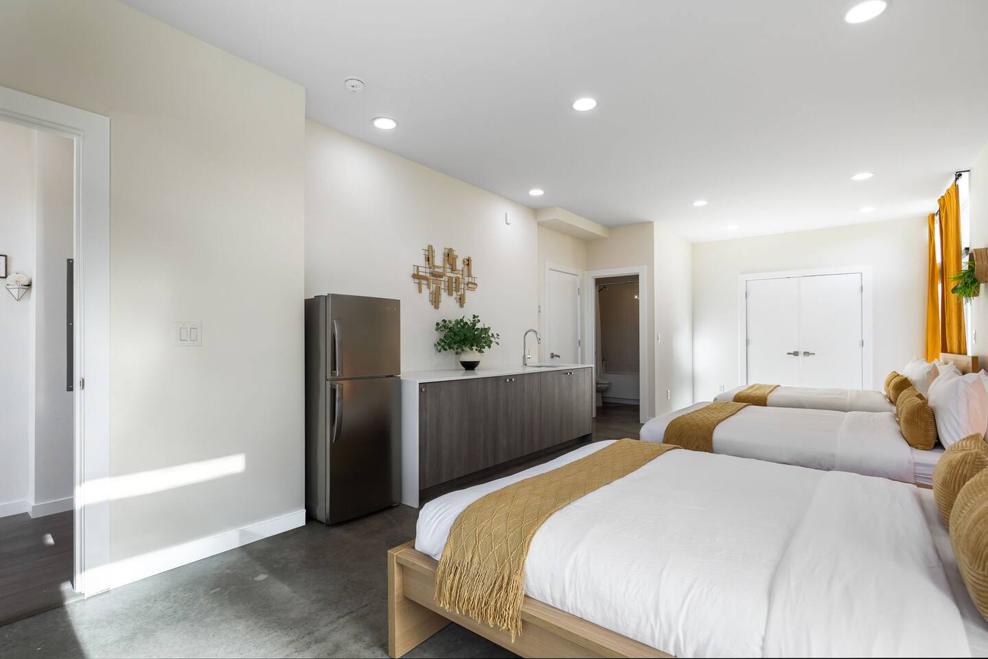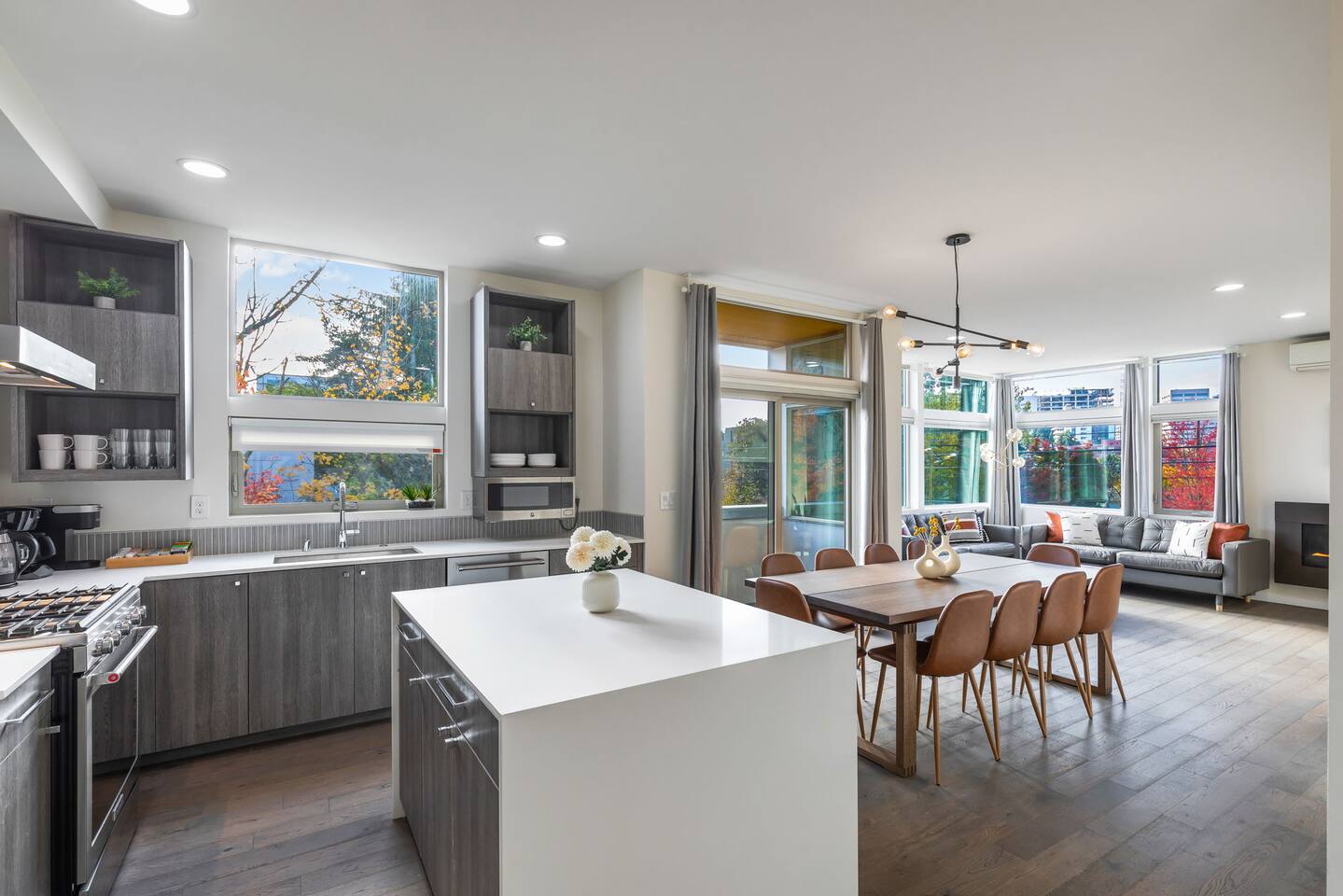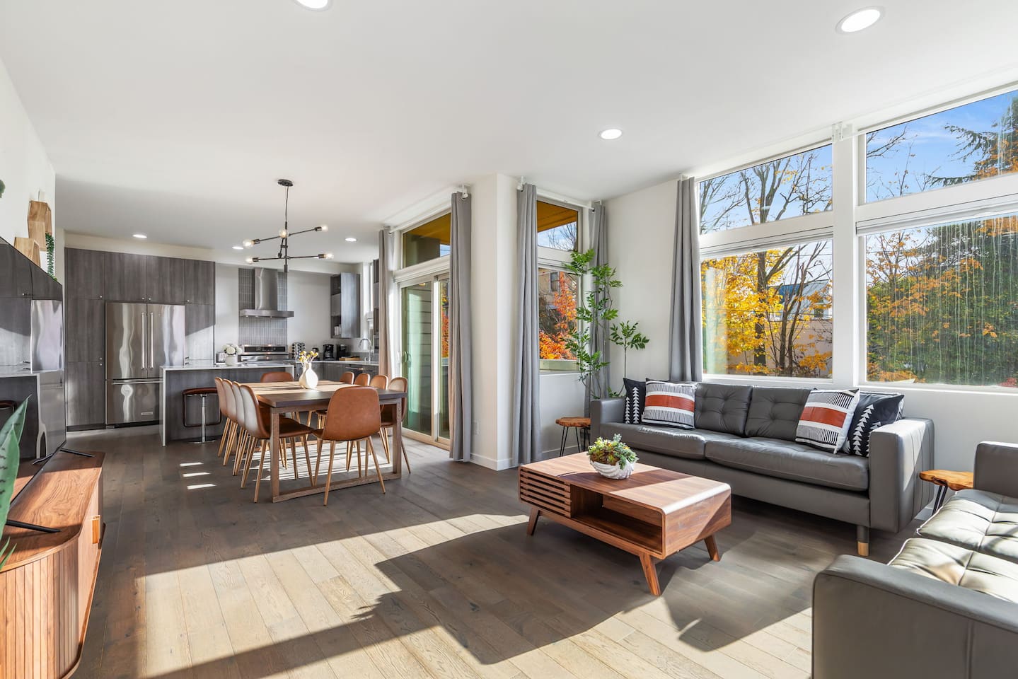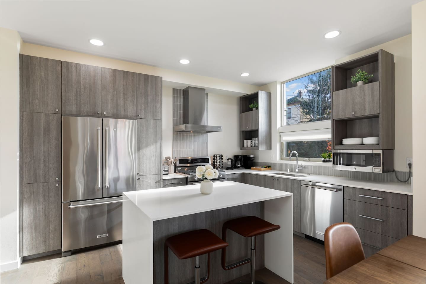 Beautiful 4-level 1900 sq ft townhouse with 4 bedrooms. We are a short walk to Capitol Hill and its fabulous award winning restaurants and a quick Uber ride to Pike Place Market, SLU, Queen Anne This is the perfect place for tourists to immerse themselves in the central vibe of Seattle. This beautiful luxury home offers high-end amenities through and through! Lay back on the rooftop deck with views of Seattle downtown skyline. Relax at the end of your day in high end furniture, hotel-grade luxury bedding with fresh white linens & fluffy duvets. Free one car parking! Home Layout: [First Floor] - Bedroom #1: Three queen bed with attached bathroom [Second Floor] - Living room with two sofas - Kitchen with island and dining table [Third Floor] - Bedroom #1: One queen bed - Bedroom #2: One queen bed - Bathroom #1: Full bathroom w/ tub and shower [Fourth floor] - Rooftop deck Home Highlights: - Stylish interior design and beautiful furniture in a luxury home with high-end finishes. - Hotel grade bedding for a comfortable sleep - Fully-stocked kitchen with Keurig coffee maker and coffee pods, pots, pans, bowls, plates, glasses and utensils - 65'' Smart TV with Hulu & Disney (no Cable) - High-speed WIFI (upto 1 Gbps) for all your working from home needs! - Washer/Dryer - Smarthome ready with electronic lock, and Ring security system. This house is close to everything: Capitol Hill -> 15 min walk /5 min drive Downtown Seattle/Pike Place Market -> 10 min Uber ride. Amazon Spheres -> 10 min Uber ride Chinatown/International District -> 5 min Uber ride Space Needle/Chihuly Glass museum/Olympic sculpture park -> 11 min Uber ride. Airport -> 25 min drive
