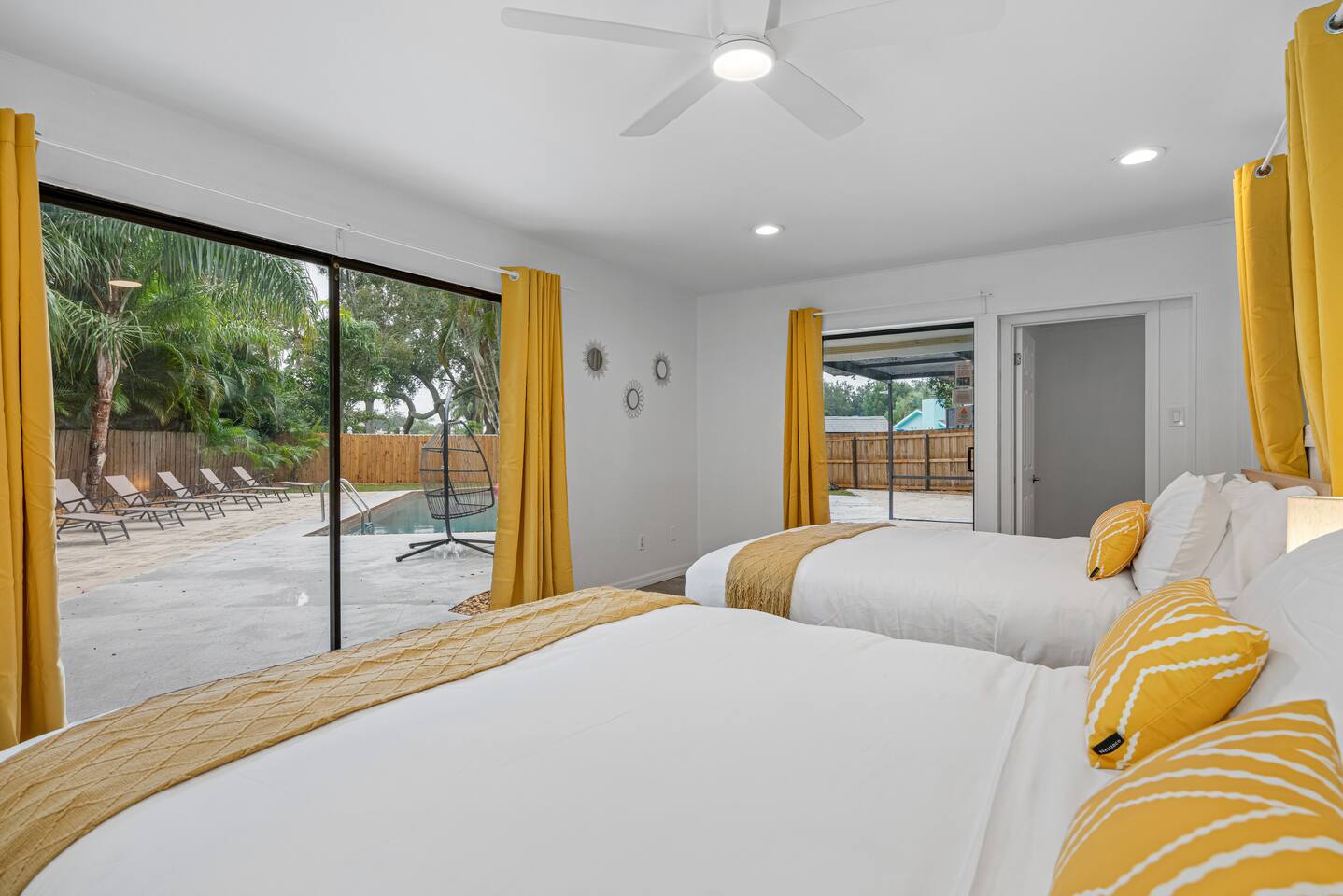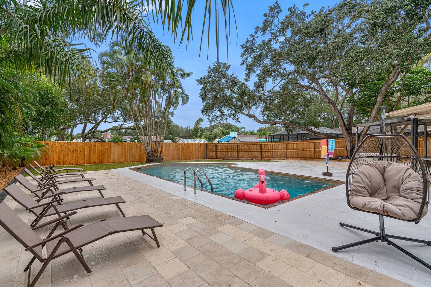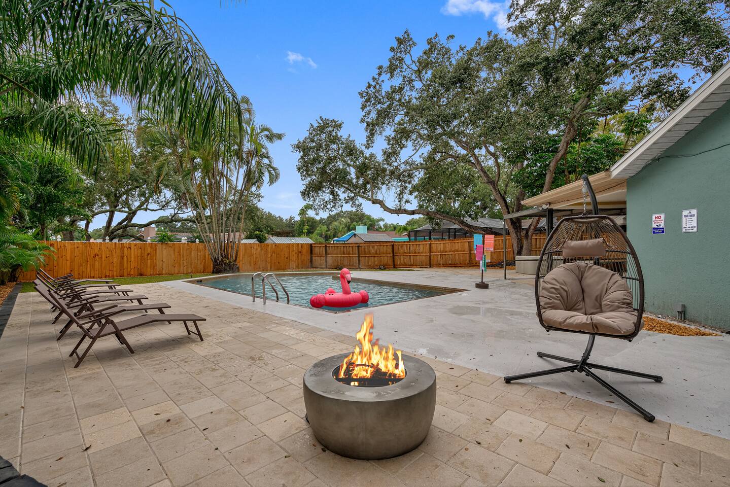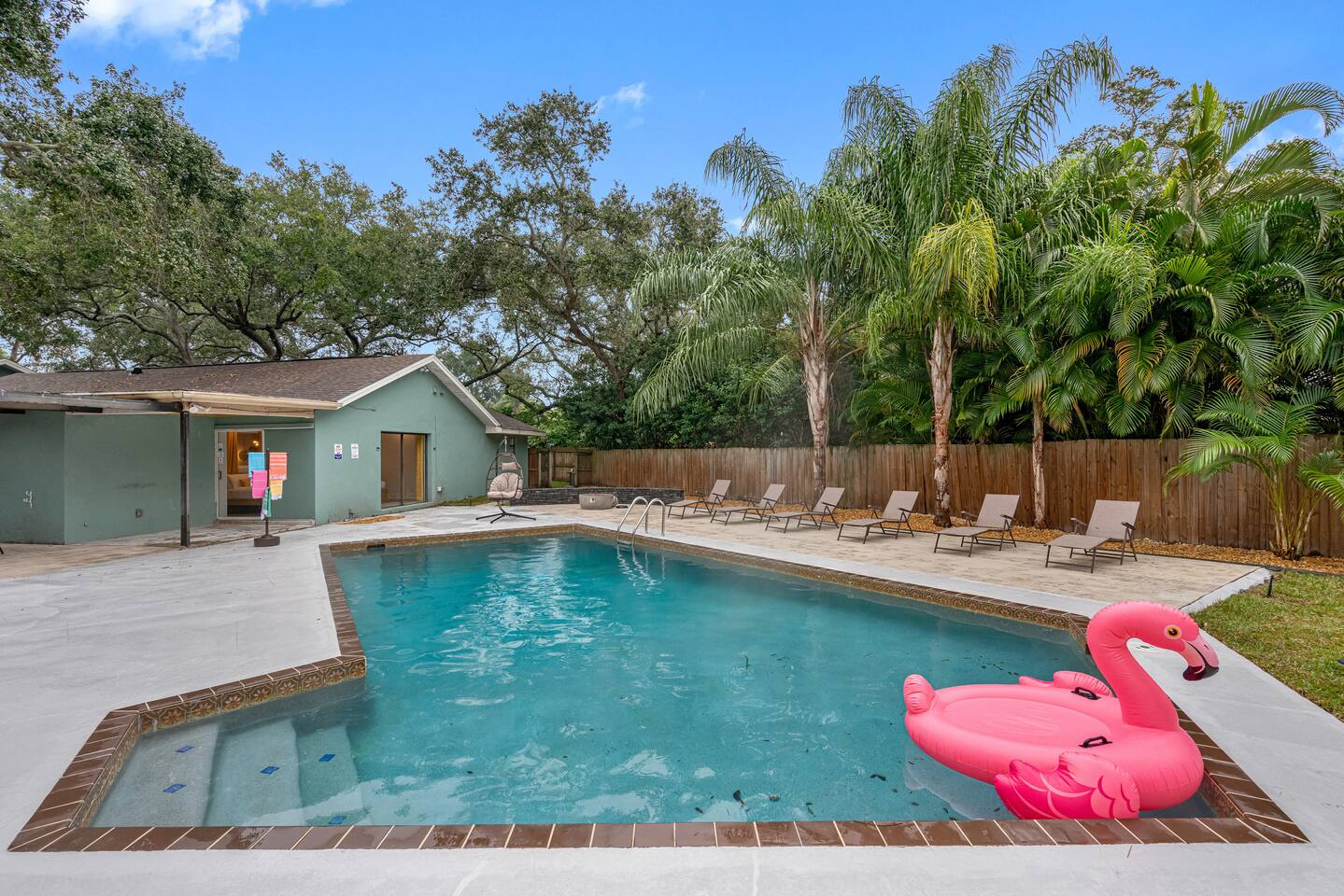 Gorgeous 5 bedroom modern home with 6 proper queen beds, amazing pool, perfect for large groups & families up to 12. Located close to beaches of Maderia, Largo, and Clearwater - find yourself in the center of everything Seminole has to offer, with a 5-10 min drive to some of the nation's most popular beaches. Relax at the end of your day in your backyard w/ heated swimming pool, hot tub, or firepit, or indoors in high end furniture, hotel-grade luxury bedding with fresh white linens.