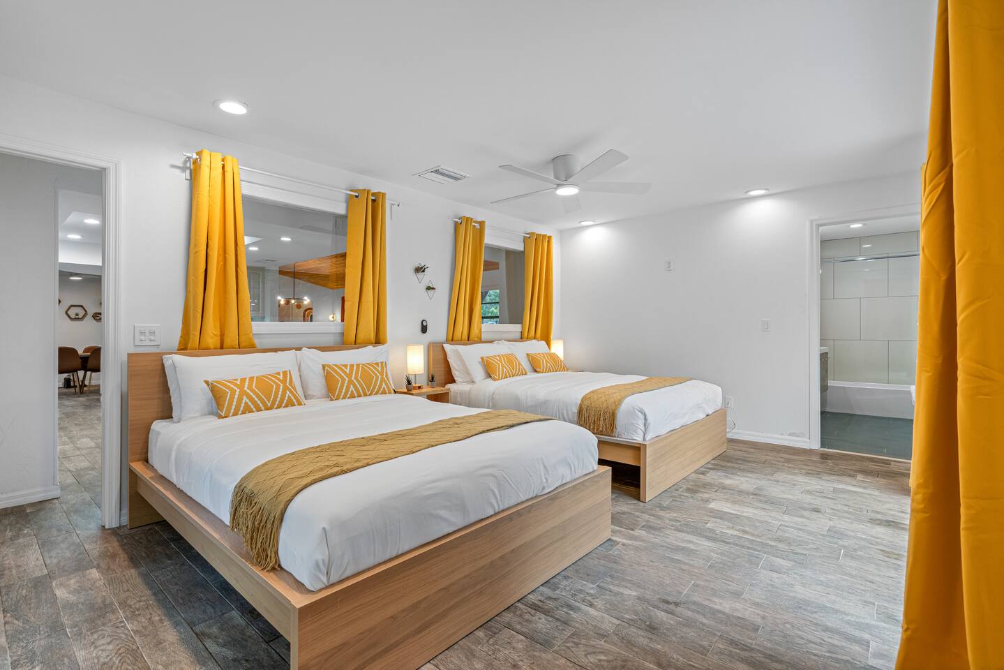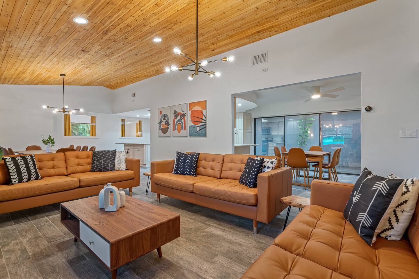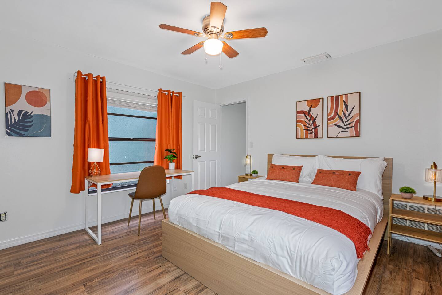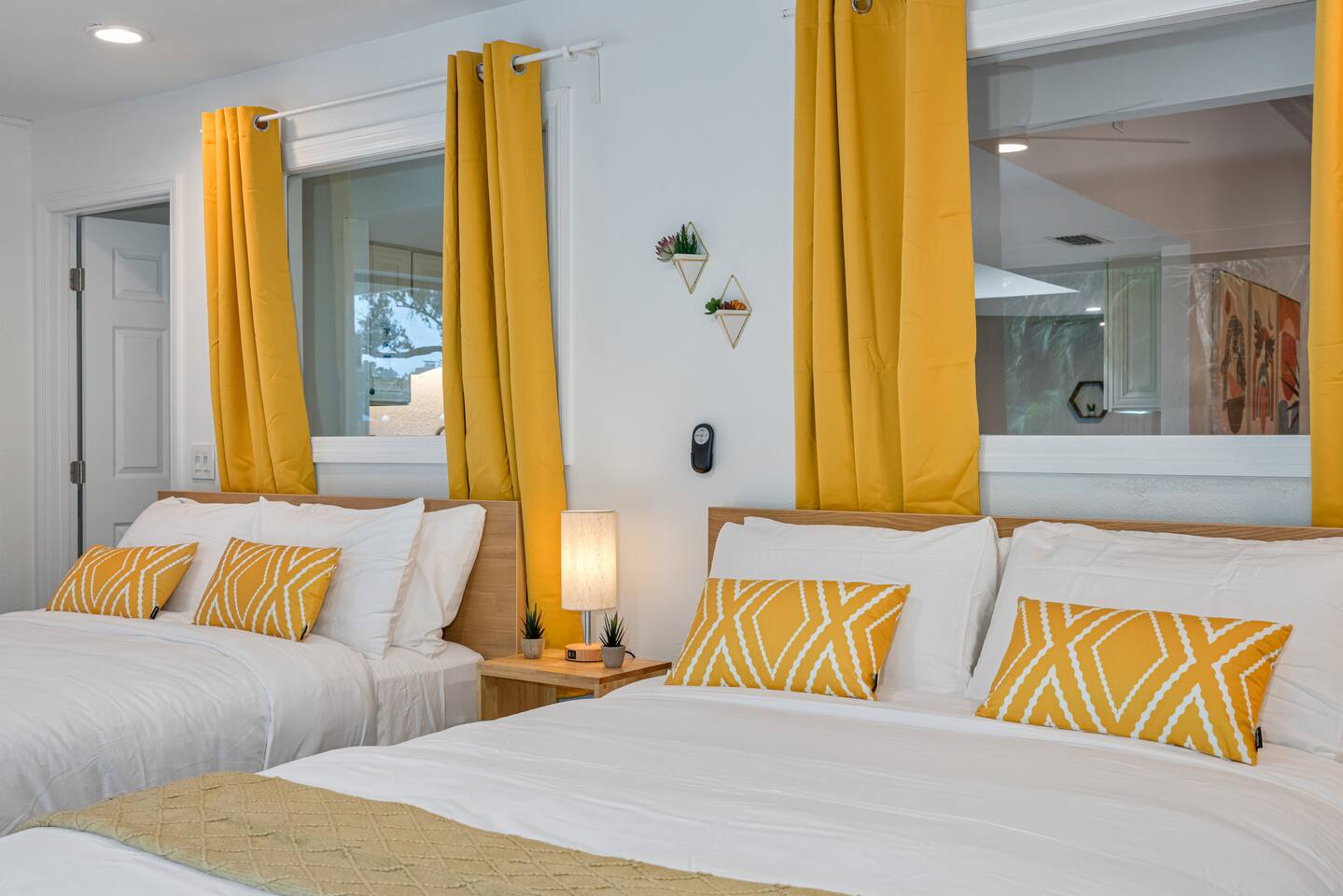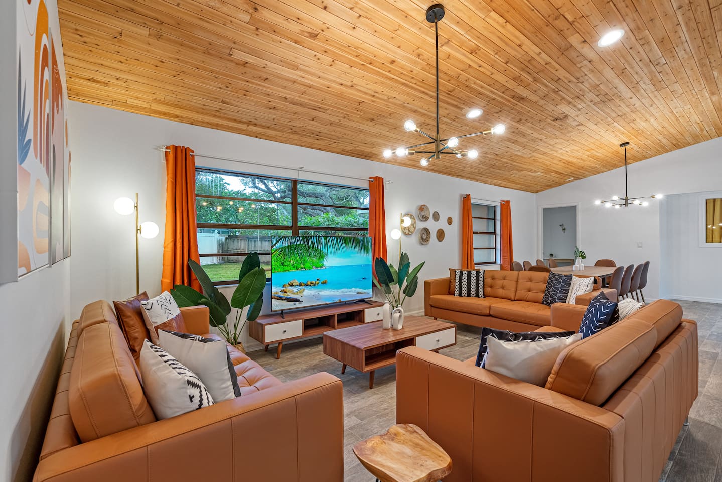 Gorgeous 5 bedroom modern home with 6 proper queen beds, amazing pool, perfect for large groups & families up to 12. Located close to beaches of Maderia, Largo, and Clearwater - find yourself in the center of everything Seminole has to offer, with a 5-10 min drive to some of the nation's most popular beaches. Relax at the end of your day in your backyard w/ heated swimming pool, hot tub, or firepit, or indoors in high end furniture, hotel-grade luxury bedding with fresh white linens.