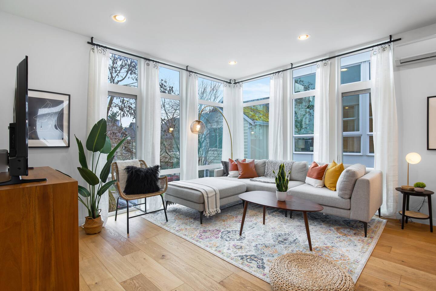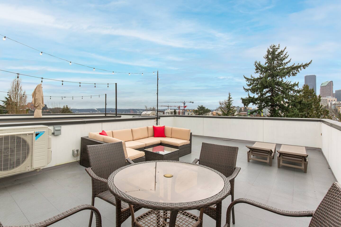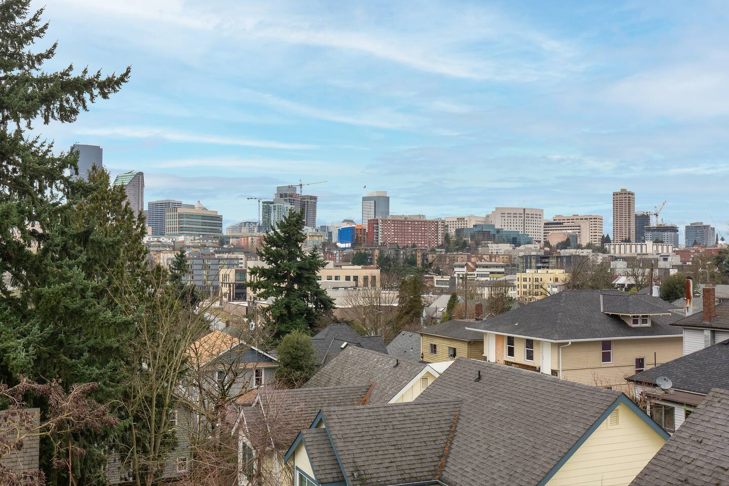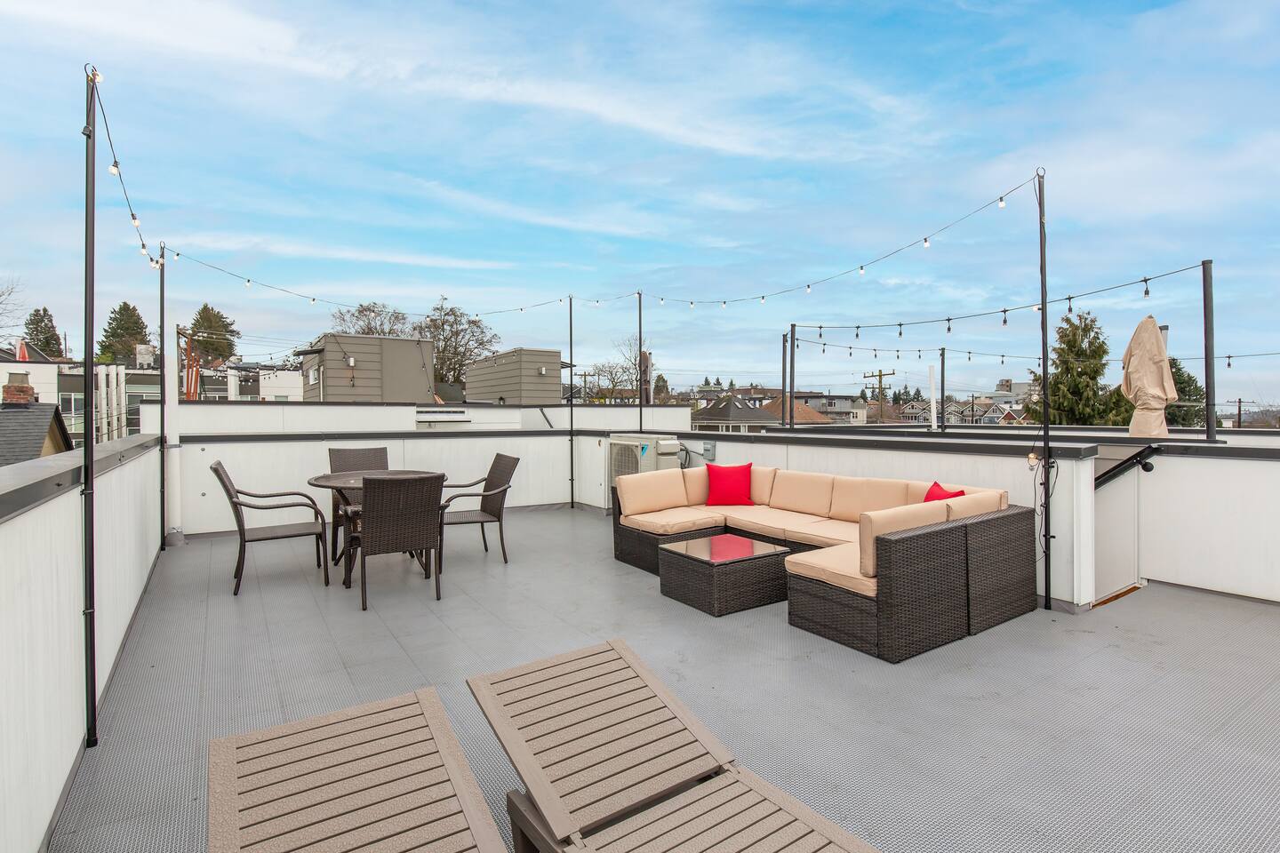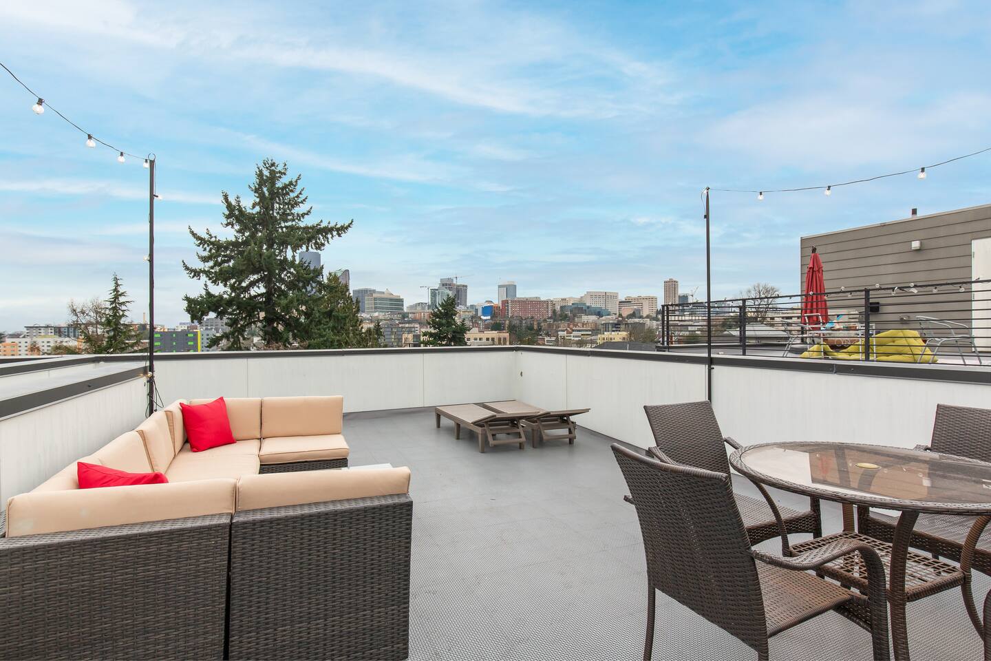 Beautiful 4-level 1300 sqft townhouse with 3 bedrooms and lots of sunlight. We are a short walk to Capitol Hill and its fabulous award winning restaurants and a quick Uber ride to Pike Place Market, SLU, Queen Anne This is the perfect place for tourists to immerse themselves in the central vibe of Seattle. This beautiful luxury home offers high-end amenities through and through! Lay back on the rooftop deck with views of Seattle downtown skyline. Relax at the end of your day in high end furniture, hotel-grade luxury bedding with fresh white linens & fluffy duvets. Free one dedicated car parking! Home Layout: [First Floor]: No AC - Bedroom #1: One queen bed - Bathroom #1: Full bathroom w/ tub [Second Floor]: AC - Living room with sofa - Kitchen with dining table [Third Floor]: AC in both bedrooms - Bedroom #3: One queen bed = Bedroom #2: One queen bed - Bathroom #2: Full bathroom w/ standing shower [Fourth floor] - Rooftop deck Home Highlights: - One dedicated parking spot - Stylish interior design and beautiful furniture in a luxury home with high-end finishes. - Hotel grade bedding for a comfortable sleep - Fully-stocked kitchen with Keurig coffee maker and coffee pods, pots, pans, bowls, plates, glasses and utensils - 55'' Smart TV with Hulu & Disney (no Cable) - High-speed WIFI (upto 1 Gbps) for all your working from home needs! - Washer/Dryer - Smarthome ready with electronic lock. This house is close to everything: Capitol Hill -> 15 min walk /5 min drive Downtown Seattle/Pike Place Market -> 10 min Uber ride. Amazon Spheres -> 10 min Uber ride Chinatown/International District -> 5 min Uber ride Space Needle/Chihuly Glass museum/Olympic sculpture park -> 11 min Uber ride. Airport -> 25 min drive