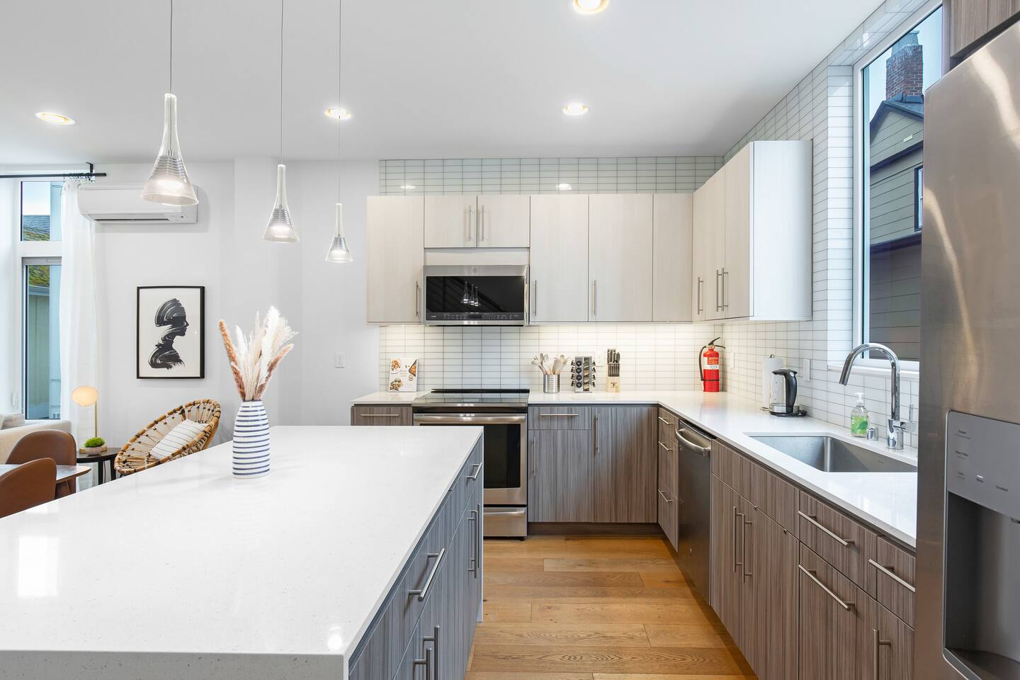 ***LOOKING FOR A DIFFERENT SIZE/LOCATION?*** We have other homes that may fit your needs. You can find all 30+ of our homes in Seattle on our profile by clicking our photo. Beautiful 3 bedroom modern townhome with 3 queen beds, perfect for large groups & families up to 6. With a 92 walk score, walk to bars and restaurants in Cap Hill, grab dim sum from Chinatown nearby. Or Uber to Pike Place/Space Needle 10 minutes away!